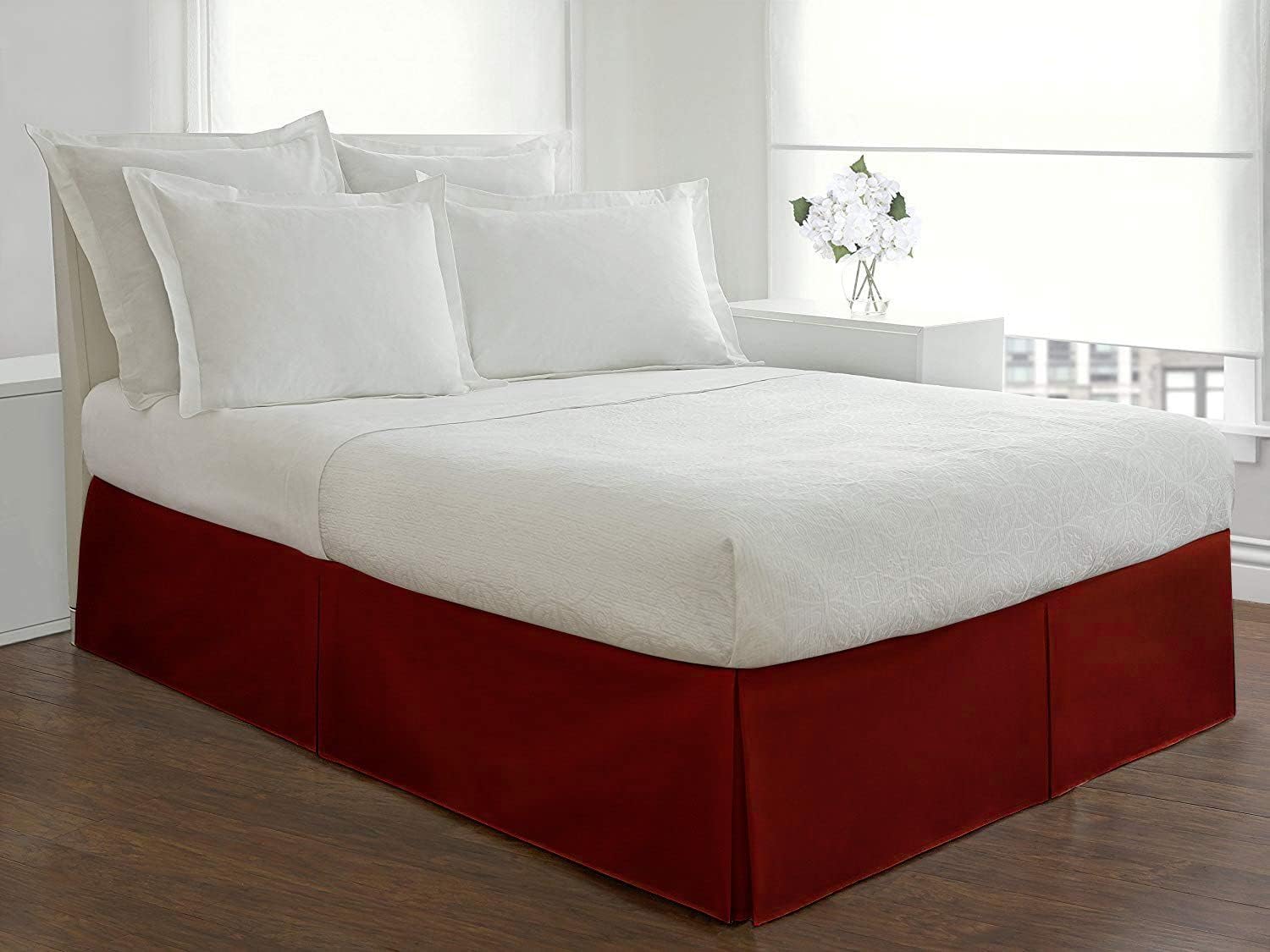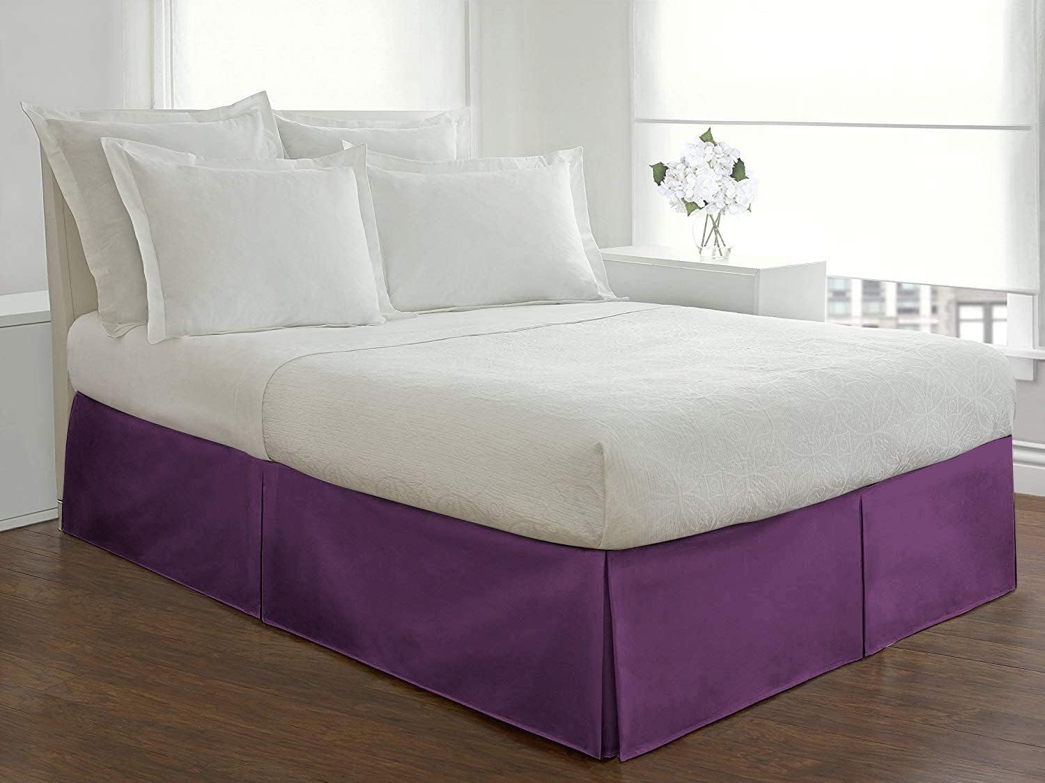 Queen Size Pleated Bed Skirt with Split Corners - 16 Inch Tailored Drop Easy Fit - Soft Egyptian Cotton 800 Thread Count, Wrinkle-Free Box Pleated Bed Skirts - Moss Solid