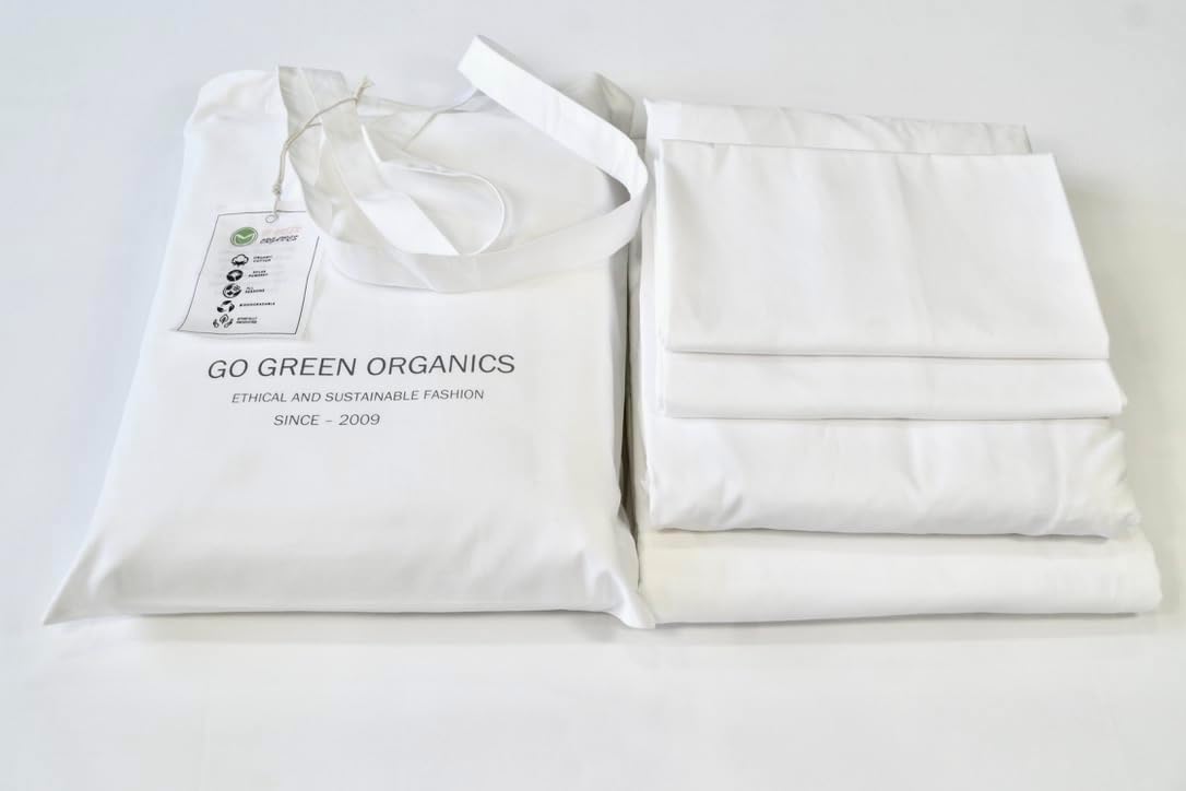 These ORGANIC COTTON HOTEL QUALITY PERCALE WHITE BED SHEET SET are made of 100% long staple GOTS certified organic cotton that is grown without the use of harmful pesticides or chemical fertilizers. The percale weave provides a crisp, cool feel that is perfect for hot summer nights. The sheets are pure white making them a long-lasting Luxury Hotel White addition to your bedroom. The set includes a flat sheet, fitted sheet, and two pillowcases, all with deep pockets for a secure fit on your mattress. The sheets are easy to care for and machine washable, making them a convenient choice for busy families. These ORGANIC COTTON HOTEL QUALITY PERCALE WHITE BED SHEET SET are a great choice for those who want to sleep on the crisp, most comfortable sheets available.