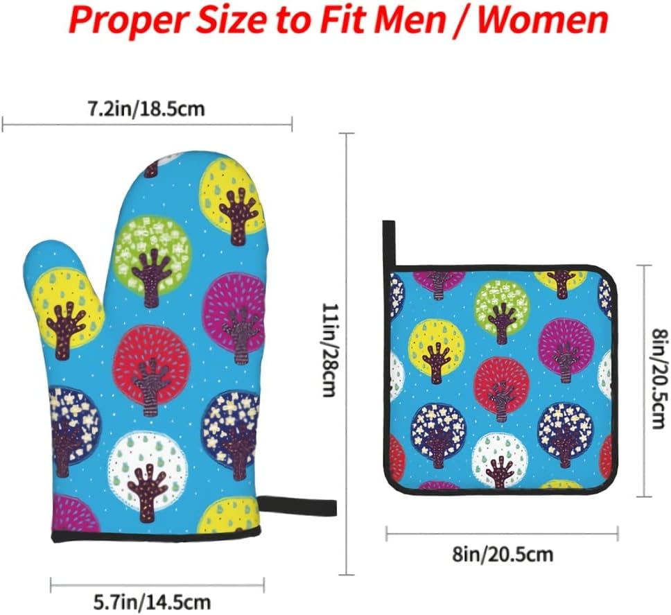 Features:comfortable fit,Glove feature textured surfaces to improve your grip strength.control, and stability over hot, heavy, or slick items. the size of the heat-insulating pad is designed, regardless of the left and right sides, which can be thermal burns and protect the Tabletop.Lanyard design, easy to organize storage, make the kitchen clean and tidy.An everyday essential in the kitchen.Material: PolyesterSize of Mitts: 7.2x11 inches/18.5x28 cmSize of Potholders: 8x8 inches/20.5x20.5 cmPackage includes:2 Oven Mitts 2 Potholders.Note:The size of the manual measurement may have some error, it is within the range of ±1 cm, the actual size shall be subject to the actual object.Due to different lighting and shooting conditions, the color of the image may differ from the actual product. Please refer to the actual product.