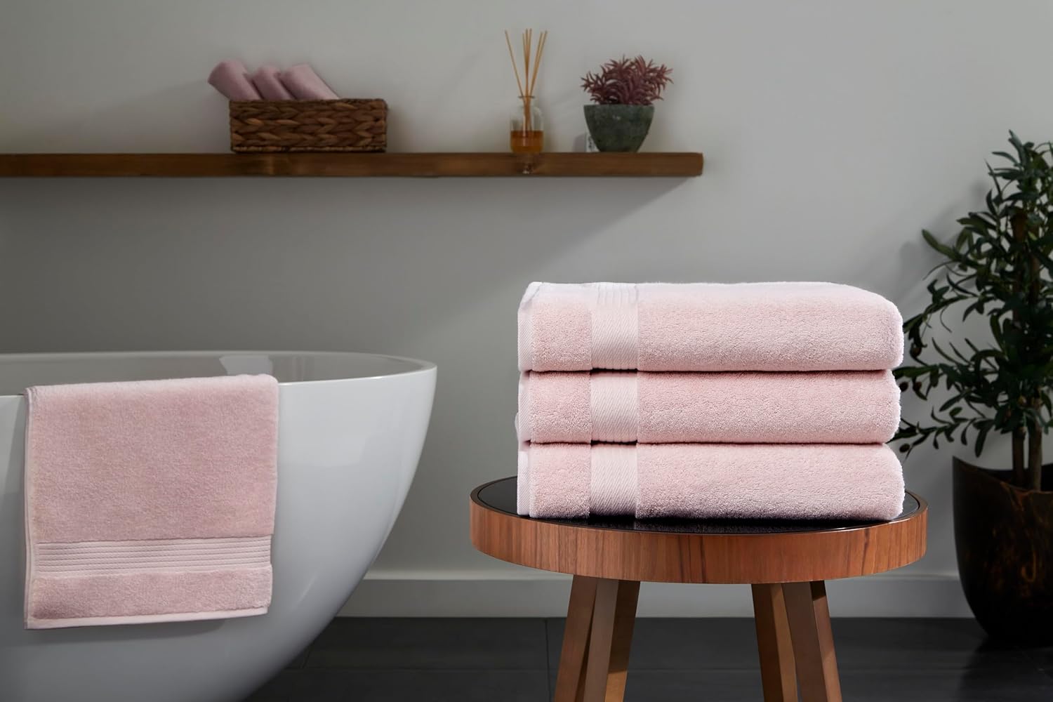 Ozdilek 4-Piece Bath Towels, 30x60 550 GSM 100% Turkish Cotton, Luxury Quick Dry, Extra Large, Fade-Resistant, Eco-Friendly, Spa Towel, Comfortable (Mauve Pink)