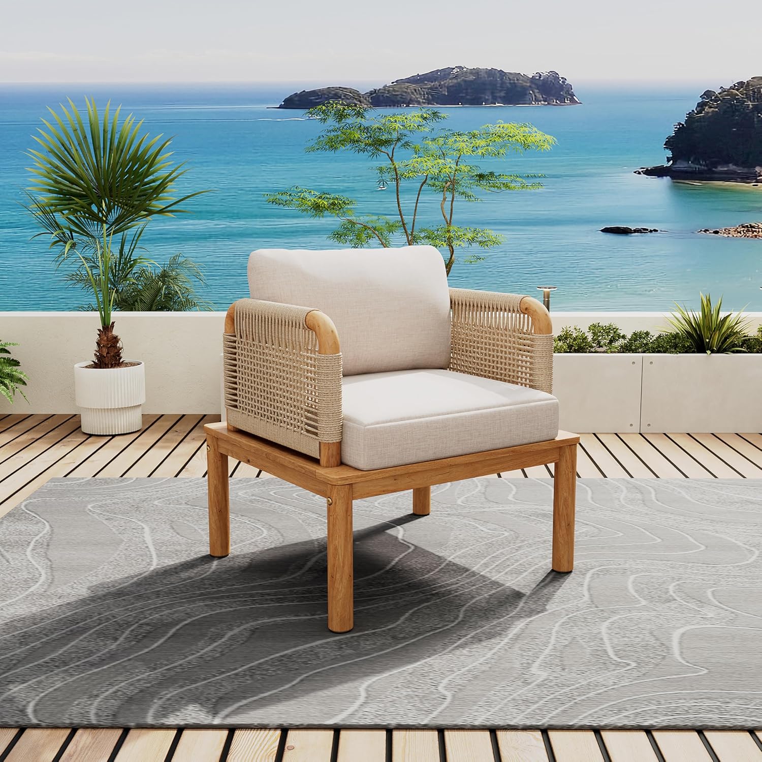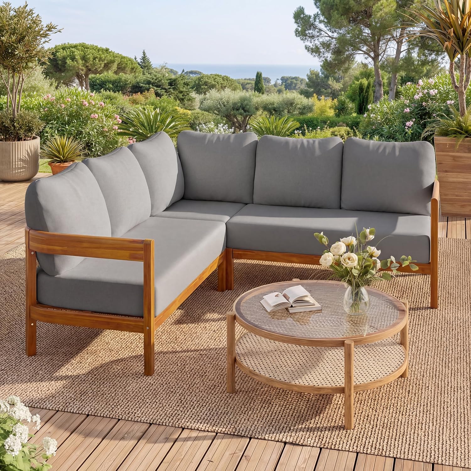 ๐The 3 seater sofa is 74.0โ W x 27.50โ D x 27.9โ H,the ottoman is 23.5โ W x 23.5โ D x 12.25โ H,and the table is 35.5โ W x 23.6โ D x 13.9โ. You will love how much your space can transform with the simple addition of this charming sofa sets. The sofa set is easy to assemble with clear instructions and all necessary accessories included. โ โ โ Specification 3 Seater Sofa Dimensions: 74.0" W x 27.50" D x 27.9" H Ottoman Dimensions: 23.5" W x 23.5" D x 12.25" H Table Dimensions: 35.5" W x 23.6" D x 13.9" H Place of Origin: Viet Nam Main Color: Beige, Teak+ Black Main Material: Acacia Wood,Iron,Waterproof Fabric โ โ โ Notes: 1. Manual measurement has been used,there may be some reasonable error. 2. All the pictures are taken by actual samples, slight chromatic aberration may occur due to lighting or display.