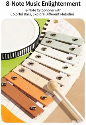 PBUH Wooden Educational Toy Set for Toddlers 2-4 Years - Music Instruments,with PU Leather Drum Head,8 Note Music Enlightenment,Castanets,Rattle drum and Copper Drum in 1 full amazing Fun set.