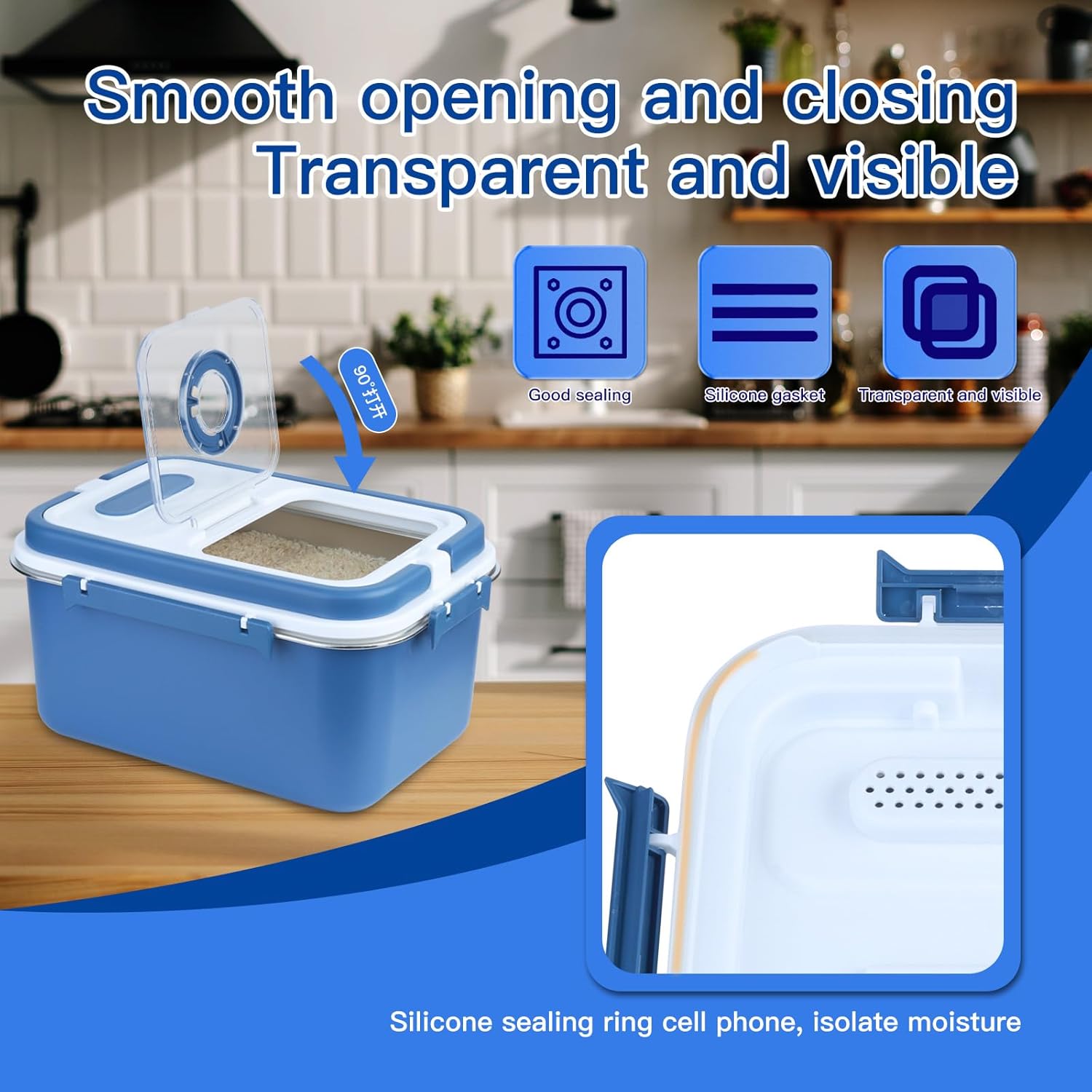 • Safe & Airtight Seal : Airtight food storage container is food grade stainless steel material, sturdy and safe; rice storage container with silicon rings keep the food fresh and dry.