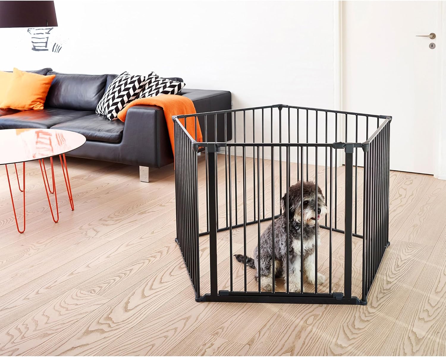 Pet Flex System XXL Wall Mounted at Home Dog Gate for Fireplaces, Wide and Irregular Door Openings, and Staircases, Black