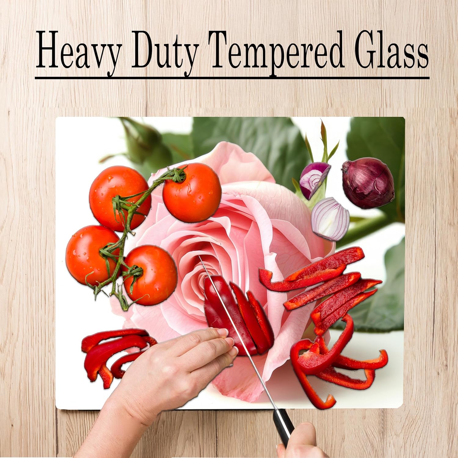 This Stylish Cutting Board Adds an Artistic Design To Any Kitchen. Our Unique Durable Long Lasting Carving Boards Make a Great Gift For Any Occasion. Impact Resistant Tempered Glass Protects Your Counter From Scratches Comes with 4 Non Slip Feet Bring Style To Your Kitchen Perfect gift for Mom on Mother's Day Grandma Aunt Sister Wife Girlfriend or Friend Red Rose Flowers Design Gift For Her Mom Wife