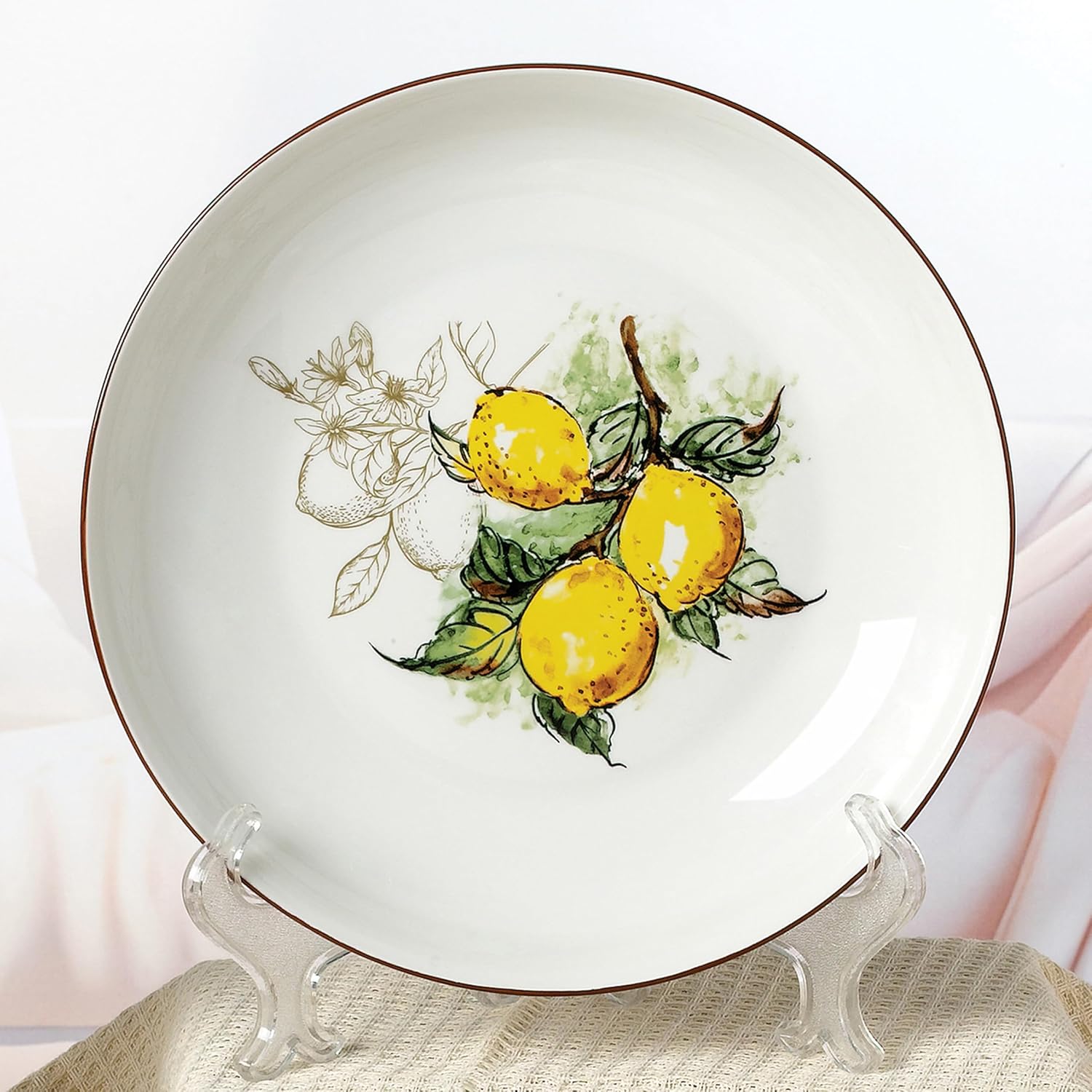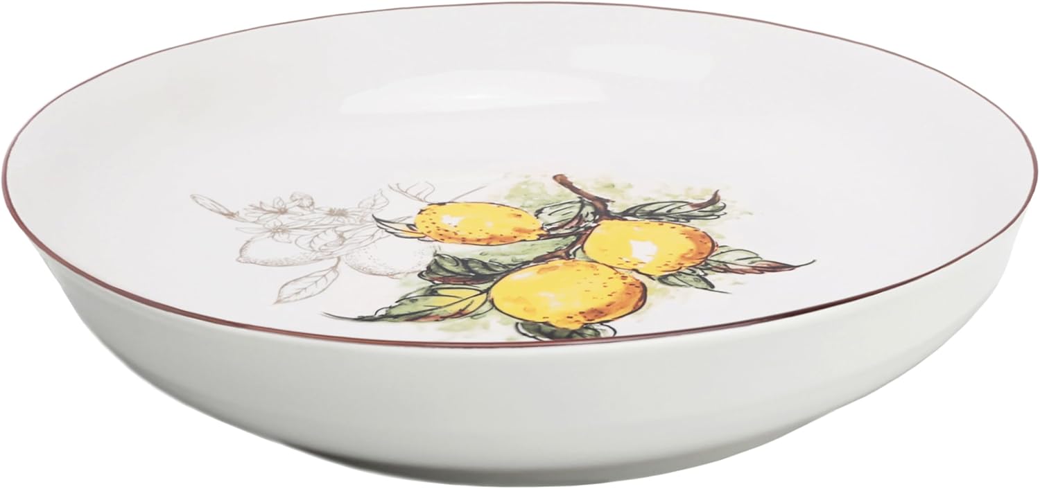 Bring a touch of Mediterranean charm to your dining table with this delightful porcelain pasta set. The collection includes a generous 11-inch serving bowl and four 8-inch individual bowls, all adorned with a charming lemon vine pattern that adds a fresh, vibrant aesthetic to your dining experience. The simple yet elegant design makes it perfect for both casual family dinners and entertaining guests. These versatile bowls aren't just for pasta - they're ideal for serving salads, soups, or any family favorites. Crafted from durable porcelain, these bowls offer practical convenience with their dishwasher and microwave-safe features, making preparation and cleanup a breeze. The serving bowl's 2-inch depth ensures ample capacity for your favorite dishes, while the individual bowls at 1.5 inches deep are perfectly proportioned for personal servings. The timeless design and practical functionality make this set a beautiful addition to any kitchen collection.
