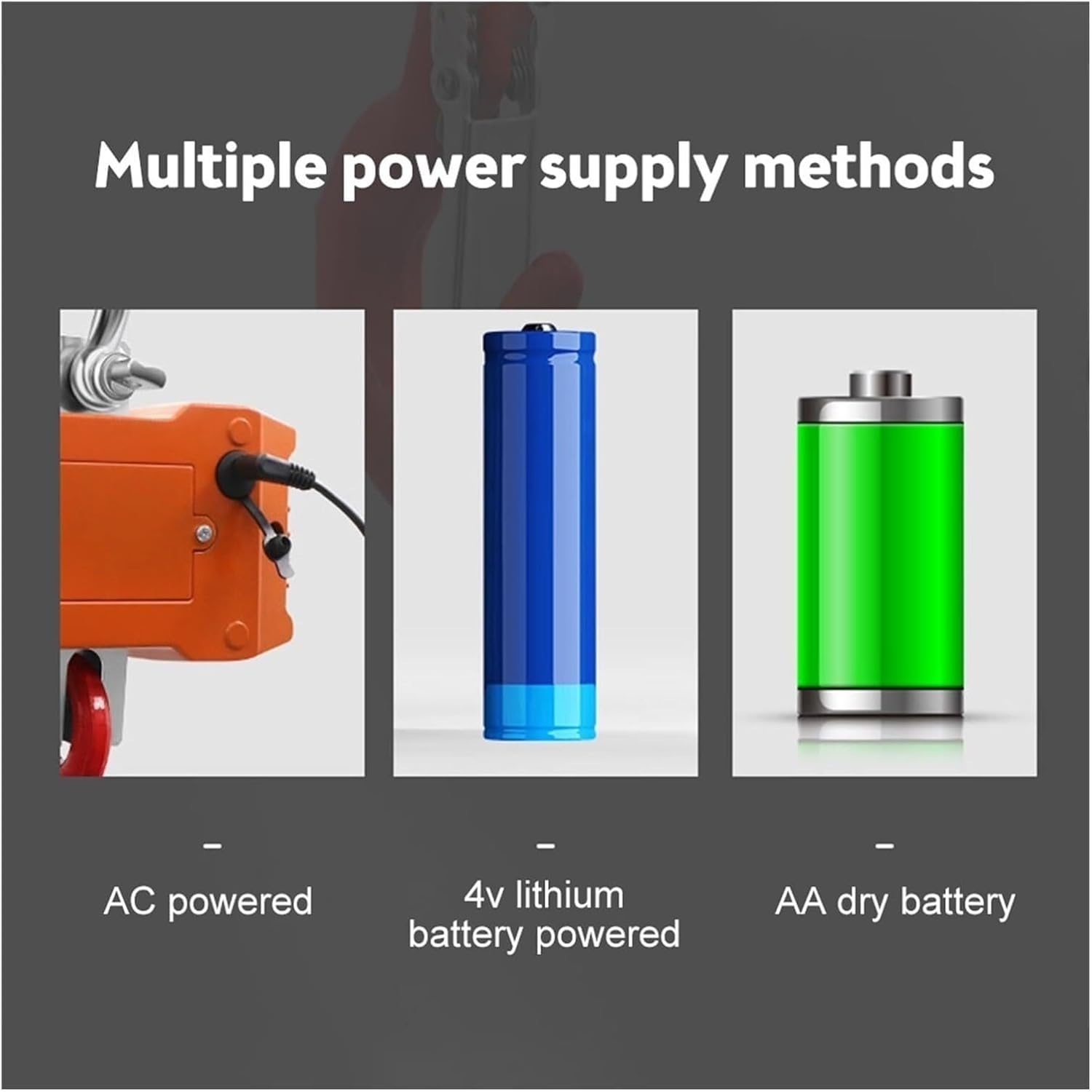 Color: Orange, Black, BlueMaterial: Steel, Aluminum and ABSMinimum Capacity: 10kg (22lbs)Maximum Capacity: 1000kg (2204lbs)Resolution: 0.5kgUnit Switching: kg/lbsPower Supply: 2.AA BatteriesWorking Environment: -10.40, 2090%RHPackage Included:1 * Digital Crane Scale1 * Charger1 * Remote Control1 * Instructions