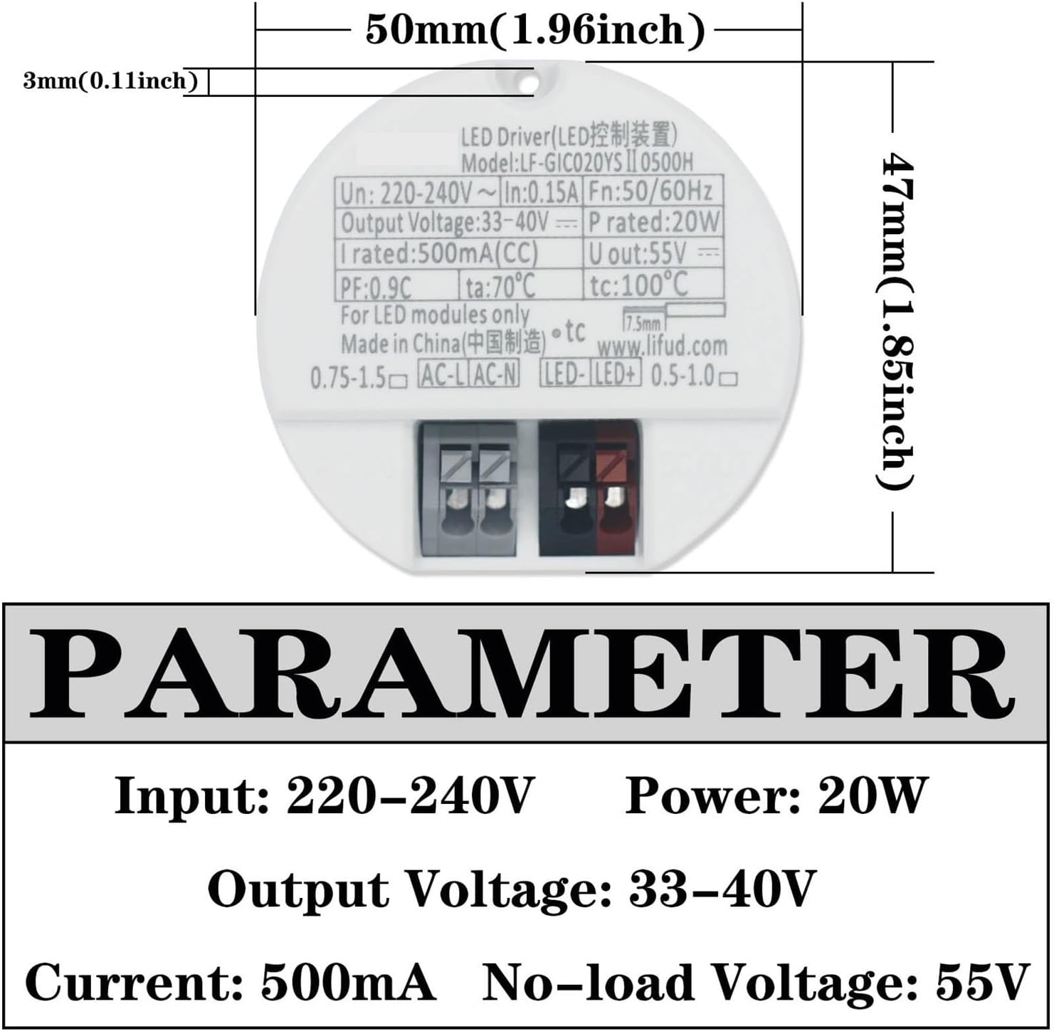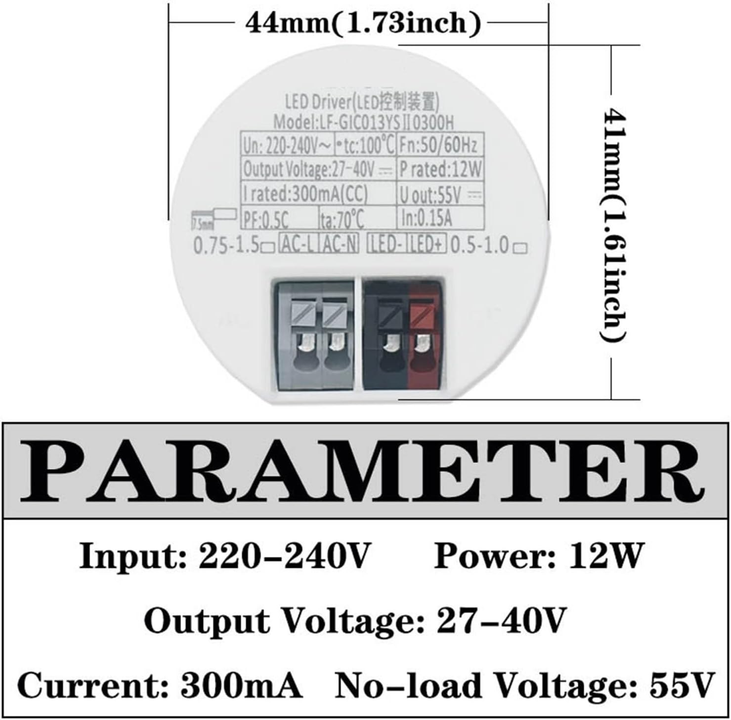 Industrial Power SupplyProduct detailsPower: 10W/12W/14W/18W/20W/30W/40WInput: AC220-240VOutput voltage: DC27-40V/33-40VCurrent: 250mA/300mA/350mA/450mA/500mA/750mA/1000mANo-load voltage: 55VMaterial: plastic, glue inside, cannot be disassembled.==========Features: Supports open circuit and short circuit protection, no flickerWeight: 115kgOutput signal: DCInput signal: ACOutput voltage: DC27-40V/33-40VInput voltage: 220-240VProduct Type: Lighting TransformerFeature 1: Ta: 70C, high temperature resistanceFeature 2: Small size, with terminal blocks, more convenient to useFeature 3: Comply with the latest ErP and harmonic standardsFeature 4: Support open circuit and short circuit protectionFeature 5: No flickerApplicable: track lights, downlights, ceiling lightsPower: 10W/12W/14W/18W/20W/30W/40W10W current: 250mA12W current: 300mA14W current: 350mA18W current: 450mA20W current: 500mA30W current: 750mA40W current: 1000mA