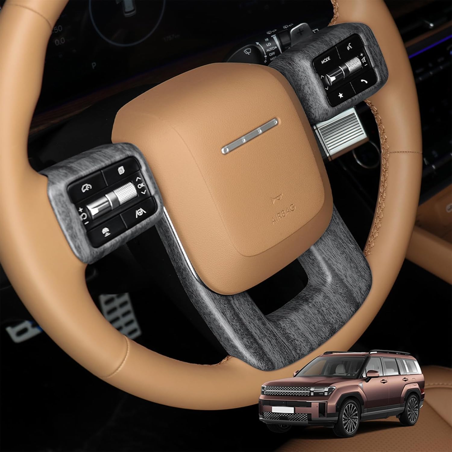 Premium Car Steering Wheel Handle Frame Cover – Compatible with Hyundai Santa FE 2024-2025 AccessoriesUpgrade your driving experience with our Premium Car Steering Wheel Handle Frame Cover, meticulously crafted to deliver luxury, comfort, and durability. Designed exclusively for Hyundai Santa FE 2024-2025 models, this sleek accessory ensures a perfect fit while enhancing your vehicle interior aesthetics.Featuring a premium, non-slip silicone and leather hybrid material, it provides a soft, ergonomic grip for reduced hand fatigue during long drives. The precise laser-cut design seamlessly integrates with for your Santa FE steering wheel controls, ensuring uninterrupted access to all functions.Quick and tool-free installation makes it ideal for daily use or road trips. Its sweat-resistant and anti-scratch surface protects your original steering wheel from wear, maintaining its pristine condition. Whether commuting or cruising, this cover combines style and practicality for Hyundai Santa FE owners who demand the best.Key Features:Perfect Compatibility: Designed specifically for Hyundai Santa FE 2024-2025 models.Enhanced Comfort: Textured grip for optimal control and reduced slipping.Durable Material: High-quality silicone-leather blend, easy to clean and heat-resistant.Universal Style: Sleek black finish complements any interior.Elevate for your Hyundai Santa FE cabin with this essential upgrade—order now and enjoy a luxurious, secure driving experience every day!