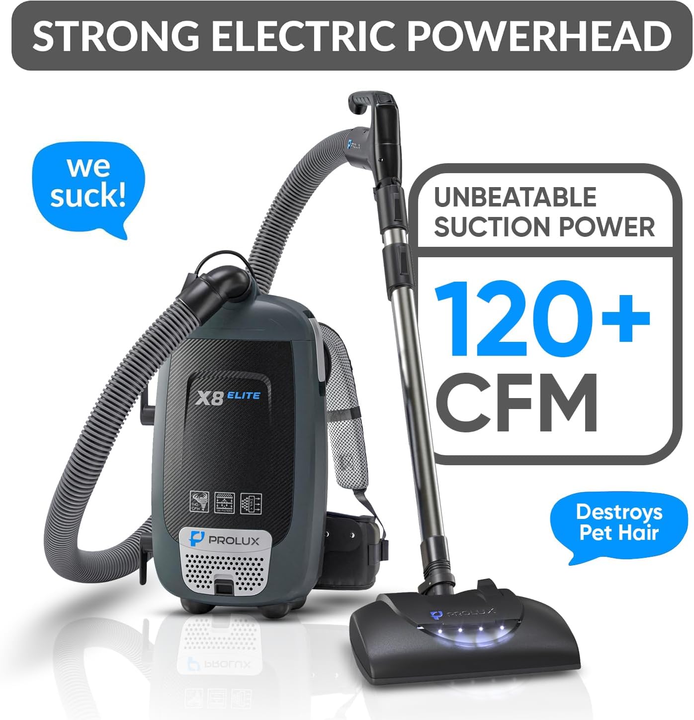 | Other Special Features of the Product | 120 CFM of Suction, Electric Power Nozzle, HEPA |