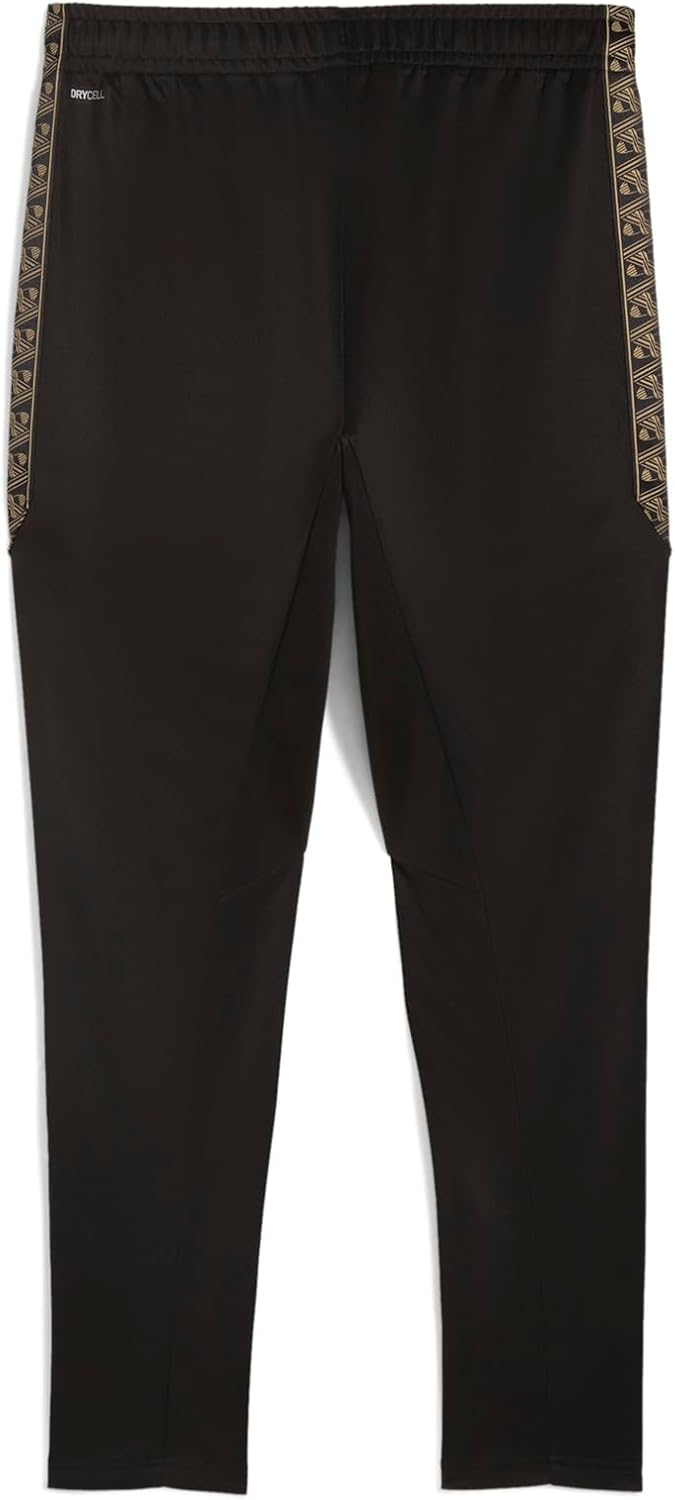 The KINGtouch Pants bring archive-inspired soccer style into the modern era, blending KING heritage with performance for a clean, fast look. Designed for both training and everyday wear, they feature a slim fit with a medium rise for a sharp profile, an elastic waistband with an internal drawcord for secure comfort, and zippered side pockets to keep essentials safe. Breathable knit construction supports easy movement, while dryCELL technology helps manage sweat when the pace picks up. Finished with PUMA KING branding and the iconic PUMA Cat Logo, these pants deliver classic confidence for players, fans, and everything in between—part of the KINGtouch collection built to keep you Forever Faster.