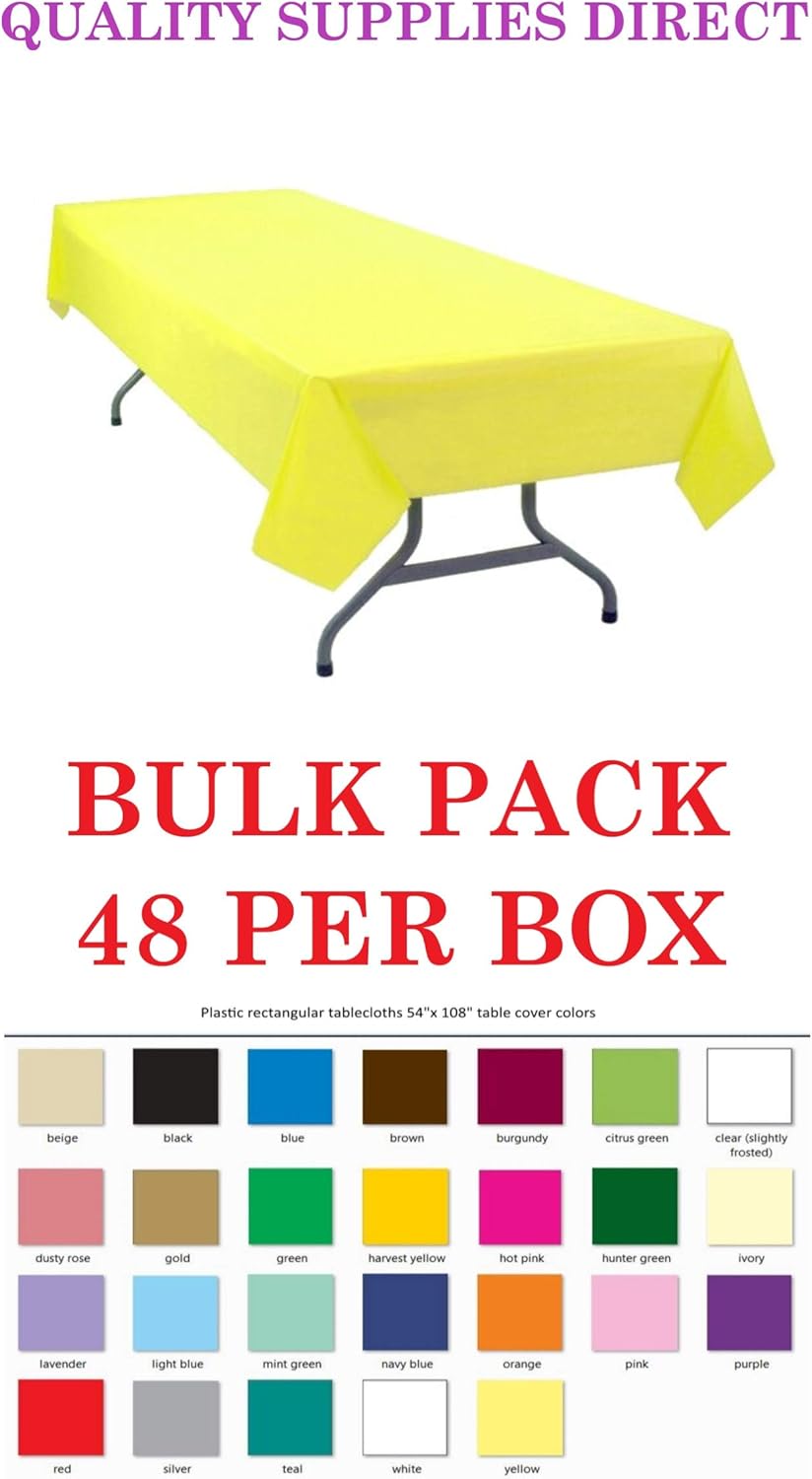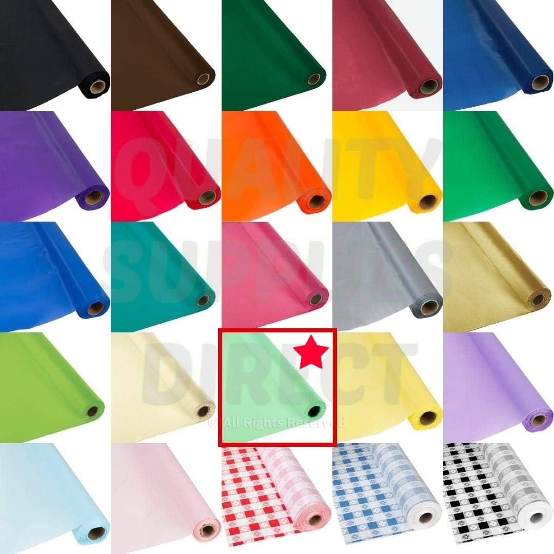 ✔️PERFECT FIT- EACH ROLL IS 300 FEET LONG BY 40 INCHES WIDE. EACH ROLL COVERS 33-8-FOOT-LONG TABLES!!! WHOLE SALE QUANTITY !!! CONVIENENT FOR ANY SIZE TABLE!!! ✔️MULTIPLE USES- Whether it is for a wedding, corporate event, birthday party, reunion, graduation, shower or fundraiser these plastic disposable tablecloth rolls will do the job for just about everything. There ideal for catering, food service, picnics, buffets, barbeque, and everyday use. ✔️PROTECT- Great protective barrier for your tables. The plastic material will protect your table top from spills. These tablecloths are great for cleaning up any mess from your kids paint projects or arts and crafts projects. These tablecloths are also a great way to line floors to catch messy spills. ✔️DECORATE- Hang them up on doors or walls to use as decorative backdrops or put them across the room as banners for an even better themed party! Coordinate your entire event by using as ceiling decoration or window drapes. ✔️CONVIENENT- Simply roll out the Length that you need and trim the tablecloth to desired length for any surface. Easy way to cover extra long tables quickly. ✔️EASY CLEAN- They’re completely disposable so no need to worry about clean up! They’re waterproof as well so no need to worry about spills. Plastic table covers make after-party clean up quick and easy. Simply roll up the tablecloth after an event and dispose it.