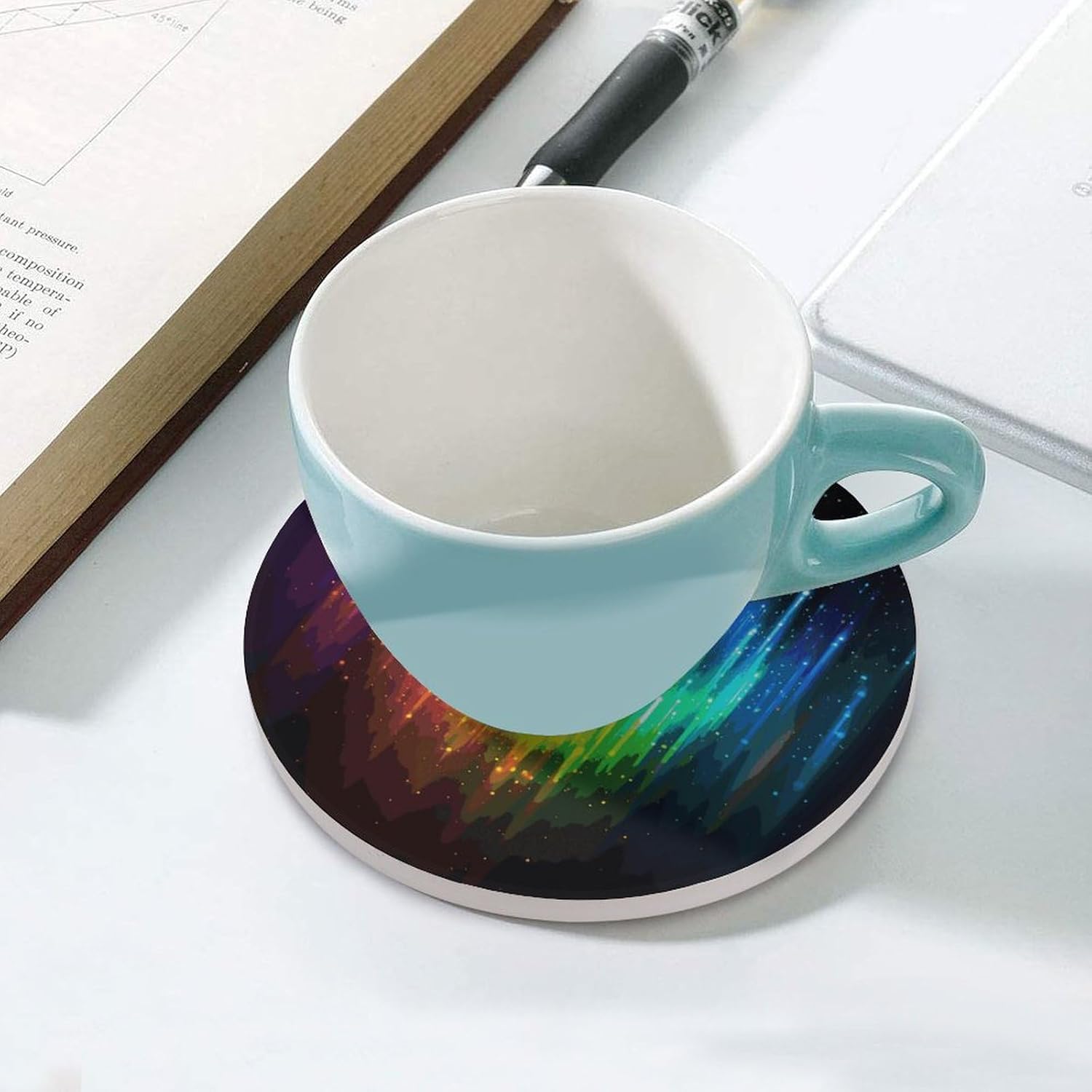 Transform your everyday drinkware experience with our Personality Round Mug Mat set, designed to blend functionality with eye-catching style. Whether you're sipping morning coffee, afternoon tea, or a relaxing evening drink, these Drink Coasters for Drinks offer the perfect balance of protection and aesthetics. The ceramic surface handles hot and cold beverages alike, while the cork backing ensures your favorite tables and countertops stay free from scratches, rings, and moisture. Available in 4PCS or 6PCS packs, these coasters are tailored to fit your daily use, whether for personal use or entertaining guests.Say goodbye to messy spills and slippery cups with our Waterproof Coasters and Anti-slip Drink Cup Mat combination. The smooth ceramic top is not only easy to wipe clean but also resists water absorption, ensuring spills don’t leave lasting marks. At 4.1 inches in diameter, each Round Ceramic Drink Coaster is sized to fit most standard mugs, glasses, and cups, making it a versatile addition to any home or office. Whether you're hosting a casual gathering or setting up a cozy workspace, these coasters keep your surfaces protected while adding a subtle, stylish touch to your decor.Elevate your space with our Fashion Coasters that double as charming coffee table decor. These Cute Drink Coasters feature a sleek round design that complements any interior style,Perfect for your kitchen, living room, bedroom, office, or bar, they make a thoughtful gift for friends, family, or colleagues who appreciate both practicality and style. Don’t settle for basic coasters—upgrade to our Heat Insulation Round Cup Mat set and enjoy a cleaner, more organized, and aesthetically pleasing environment with every sip.