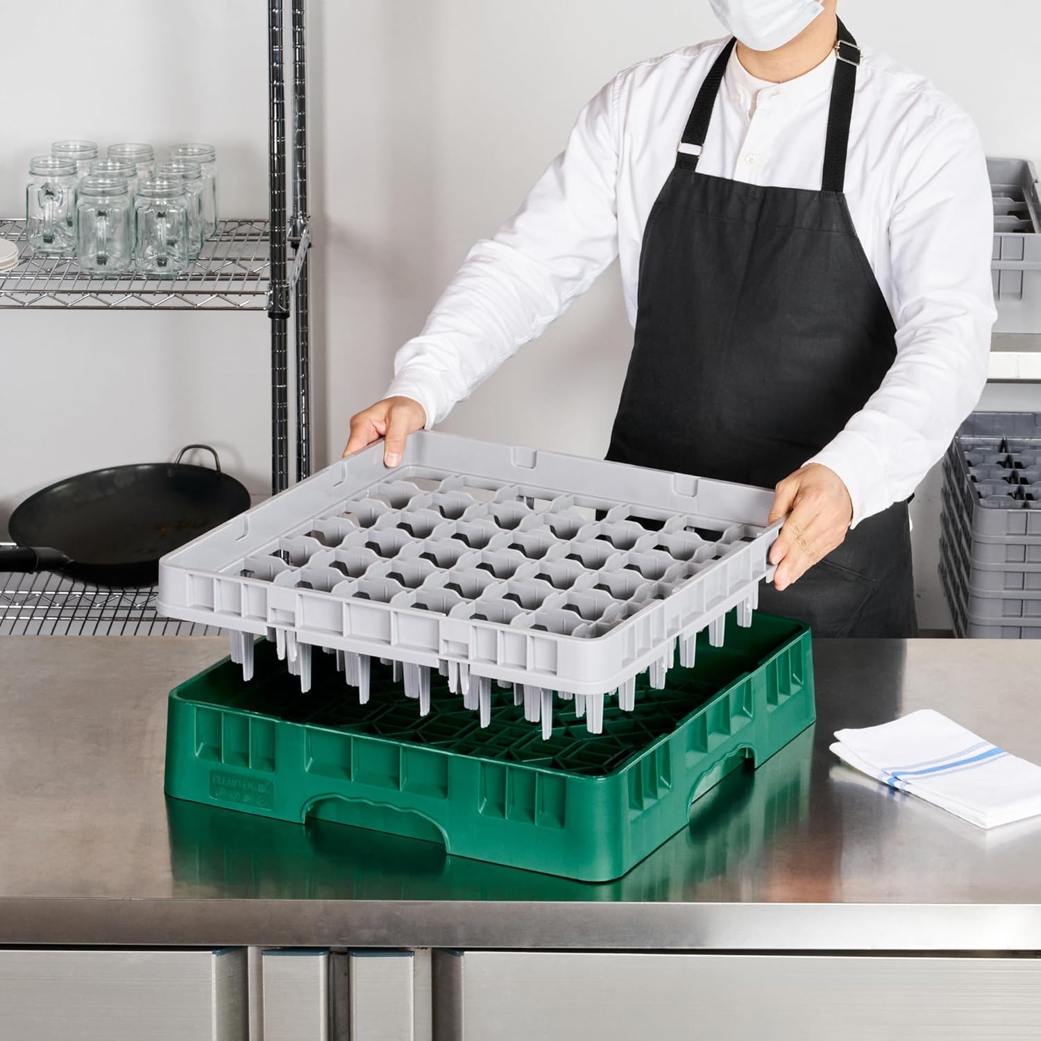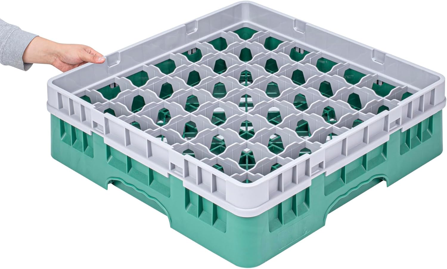 Optimize your glassware storage with our Clean Tek Professional Green Glass Rack, which is expertly designed to meet the needs of busy commercial kitchens. Featuring 49 compartments, this dishwasher rack ensures each glass is securely held in place, minimizing breakage during the cleaning process. A full drop extender adds versatility to this compartment rack, accommodating various glass heights with ease. The durable PP construction of these barware organizers provides outstanding longevity, making them a cost-effective choice for any establishment. Designed with an easy-to-handle structure, this commercial glass rack simplifies transport and storage tasks, boosting operational efficiency. Open interior compartments ensure thorough washing and drying, while the solid external walls offer superior protection and stability. Measuring 19.69 inches in length by 19.69 inches in width by 5.63 inches in height, this rack fits seamlessly into most commercial dishwasher setups. Sold in a 1 count box.