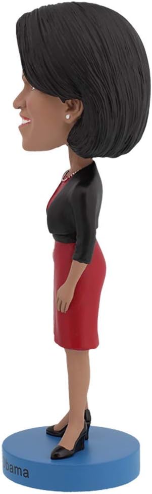 Product Description Michelle LaVaughn Robinson Obama is an American writer, lawyer, and university administrator. She is married to the 44th US President, Barack Obama, and was the first African American First Lady. Royal Bobbles features several different product lines of famous icons including entertainers, artists, and historic/political figures. Each features an authenticity hologram with a unique serial number. Each premium bobblehead comes in a colorful collector’s box with a custom-cut Styrofoam inner protection. Each over 8” tall, made from high quality, heavyweight polyresin, and individually hand-painted. As each bobblehead is carefully researched, crafted with care, and extremely detailed. Royal Bobbles is leading the industry with its realistic and lifelike likenesses, making them right at home in any environment.Founded in 2009, Royal Bobbles is a premium designer and manufacturer of high quality, exquisite collectible figurines, allowing for a high level of detail and durability in every product. Set Contains: 1x Figure