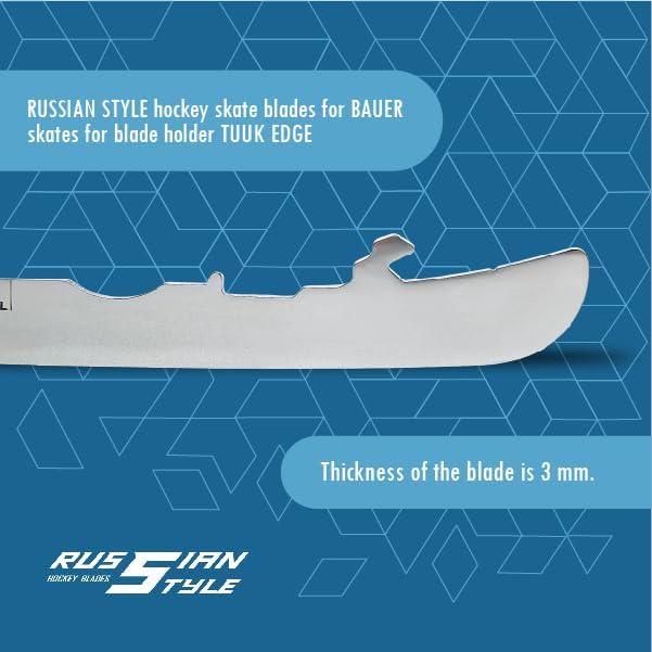 Russian Style hockey replacement skate blades are made of specially selected stainless steel of high quality ensuring impact resistance and sharpness. Thanks to the extra hardness, the blades remain sharp over time. A smoother gliding surface means less friction and more speed. Extra precise laser cutting. Profession heat treatment to provide ultimate durability - up to 40 percent more durable compared with standard blades. The blades meet all quality standards and are approved by professional hockey players. Enjoy the pleasure and beauty of hockey with these great skate blades!