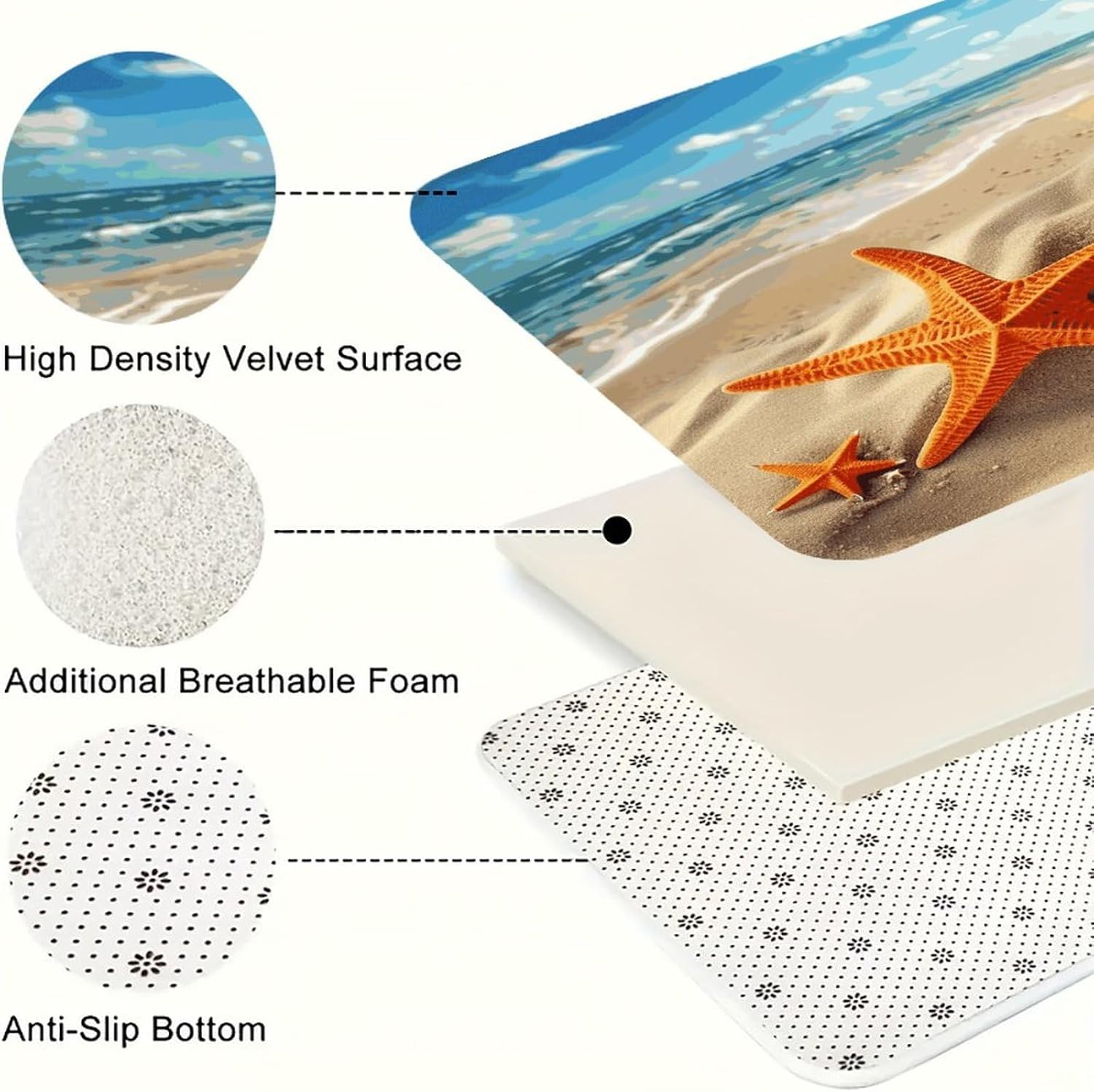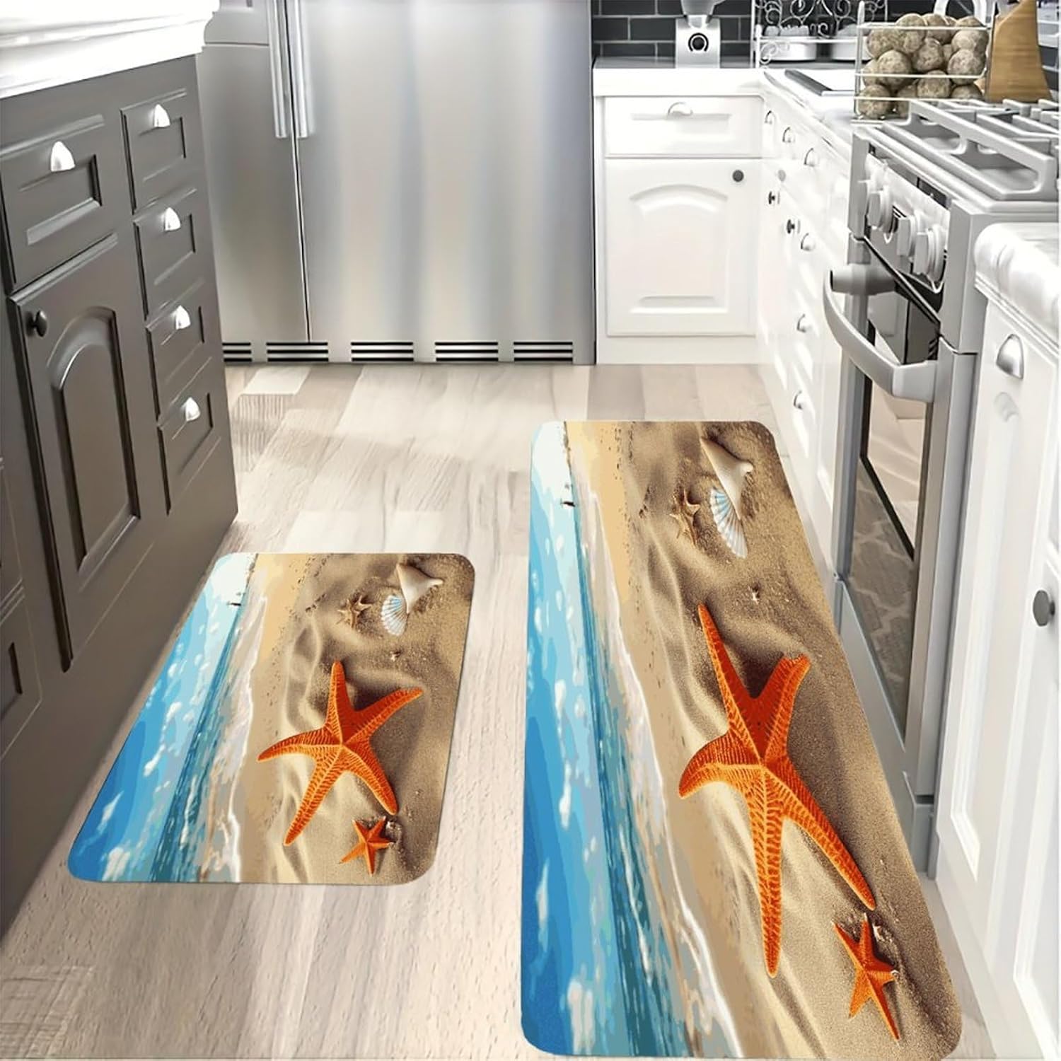 Step into instant comfort with our 2-piece Cushioned Anti Fatigue Mat set, designed to transform every standing moment into a relaxing experience. As a Comfort Desk Mat, it also eases the strain of long workdays, making it a versatile addition to any home.The Cushioned Anti-Fatigue Non-Skid Rug core offers plush support that hugs your feet, reducing the tension that comes with standing for hours. Unlike thin, flimsy alternatives, this Sea Beach Starfish Kitchen Rug is made with pill-resistant flannel that stays soft and neat through repeated use. It doubles as a Non Slip Comfort Standing Mat in your laundry room, taking the stress out of folding clothes or loading the dryer.Perfect for modern and rustic spaces alike, this Farmhouse Anti Fatigue Mat combines style with practicality. Use the Cushioned Kitchen Rug in your bathroom for a soft step out of the shower, or bring it outdoors for a comfortable spot to garden. Every detail is crafted to fit your busy lifestyle, from the easy-to-clean fabric to the multi-room functionality that makes this set a household staple.