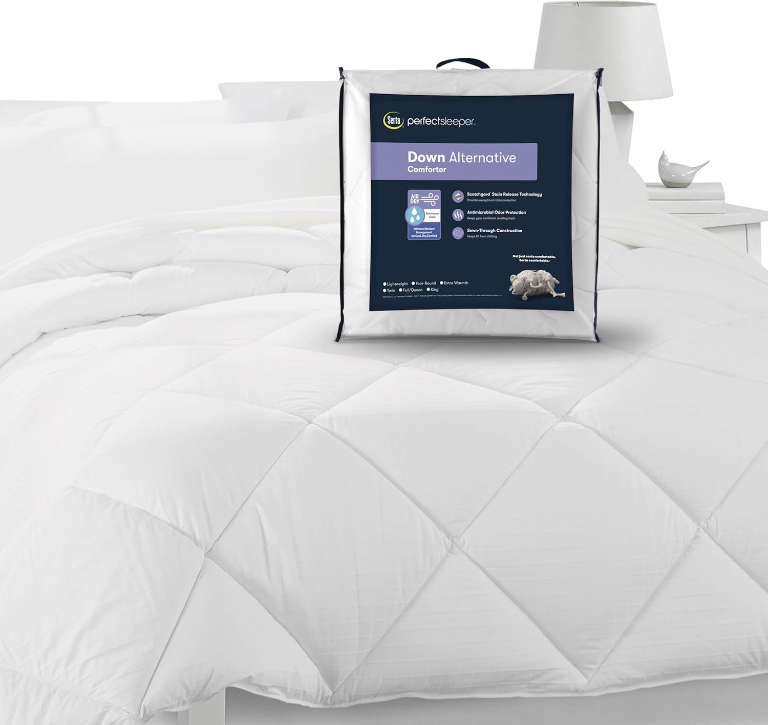 No matter the season, you'll sleep comfortably under the Serta Year Round down alternative comforter. The AirDry microfiber helps wick moisture away to keep you cool and comfortable all night while the antimicrobial technology protects against odor-causing bacteria. The sewn through construction keep fill in place and evenly distributed for a great night's sleep.