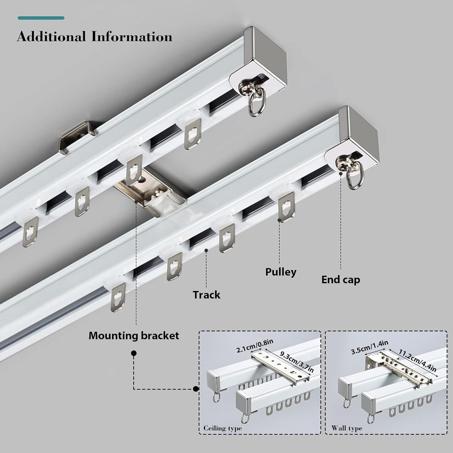 This curtain rail system is engineered for durability and adaptability, featuring sturdy mounting brackets and all necessary hardware for a reliable installation. It is ideal for various applications, whether you need a room divider, a privacy curtain for your bathroom, or stylish window treatments for your living room. Its sleek, modern design complements any decor style, making it a versatile choice for enhancing your space.The multifunctional design of this curtain track is suitable for a range of environments, from cozy homes and professional offices to RVs and rental properties. With color-coordinated accessories and a refined matte finish, it strikes the perfect balance between practicality and aesthetic charm for everyday use.Key Features:- Crafted from high-quality aluminum alloy for exceptional durability and longevity.- Offered in three sophisticated colors: Blue, Gray, and White to match your decor.- Flexible installation options allow for both ceiling and wall mounting.- Comprehensive mounting brackets included for hassle-free setup.Available Sizes:Choose from an array of lengths ranging from 70cm to 600cm, providing tailored solutions for any space and ensuring a flawless fit for your curtains.Important Note:For tracks exceeding 1.50 meters, we will ship in sections to comply with international shipping regulations. Connectors are included to facilitate seamless installation.Transform your living area with this versatile curtain rail system, designed not only for functionality but also to elevate your home’s aesthetic appeal. Whether in a busy office or a tranquil home setting, this curtain track provides the perfect solution for your window treatment needs.