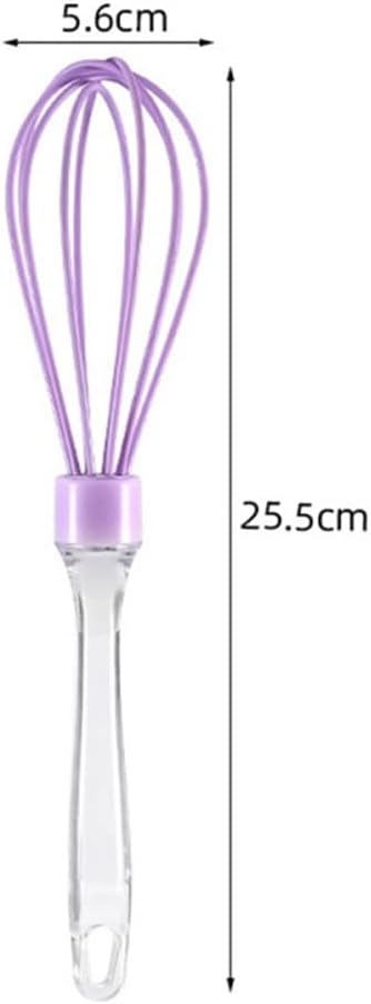 1. Design: Silicone whisk, food-grade material. Please do not use cleaning balls and other hard objects for surface cleaning.2. Material: Made of silicone + PP, corrosion-resistant, will not damage the kitchenware.3. Use: For whipping and mixing batter, cream, butter, eggs, etc.4. Appearance: 4 colors to choose from to meet your needs.5. Features: Food-grade silicone, good corrosion resistance, no damage to utensils.Specification:Material: silicone whiskSize: 25.5*5.6cm;Color: , green, red, violetWeight: 37gPackage Included:1* egg beaterIf you have any questions about the product, please me, we will you within 24 hours and give you a satisfactory answer.Comfortable grip, easy to grip when in use, just press lightly to easily change speed.