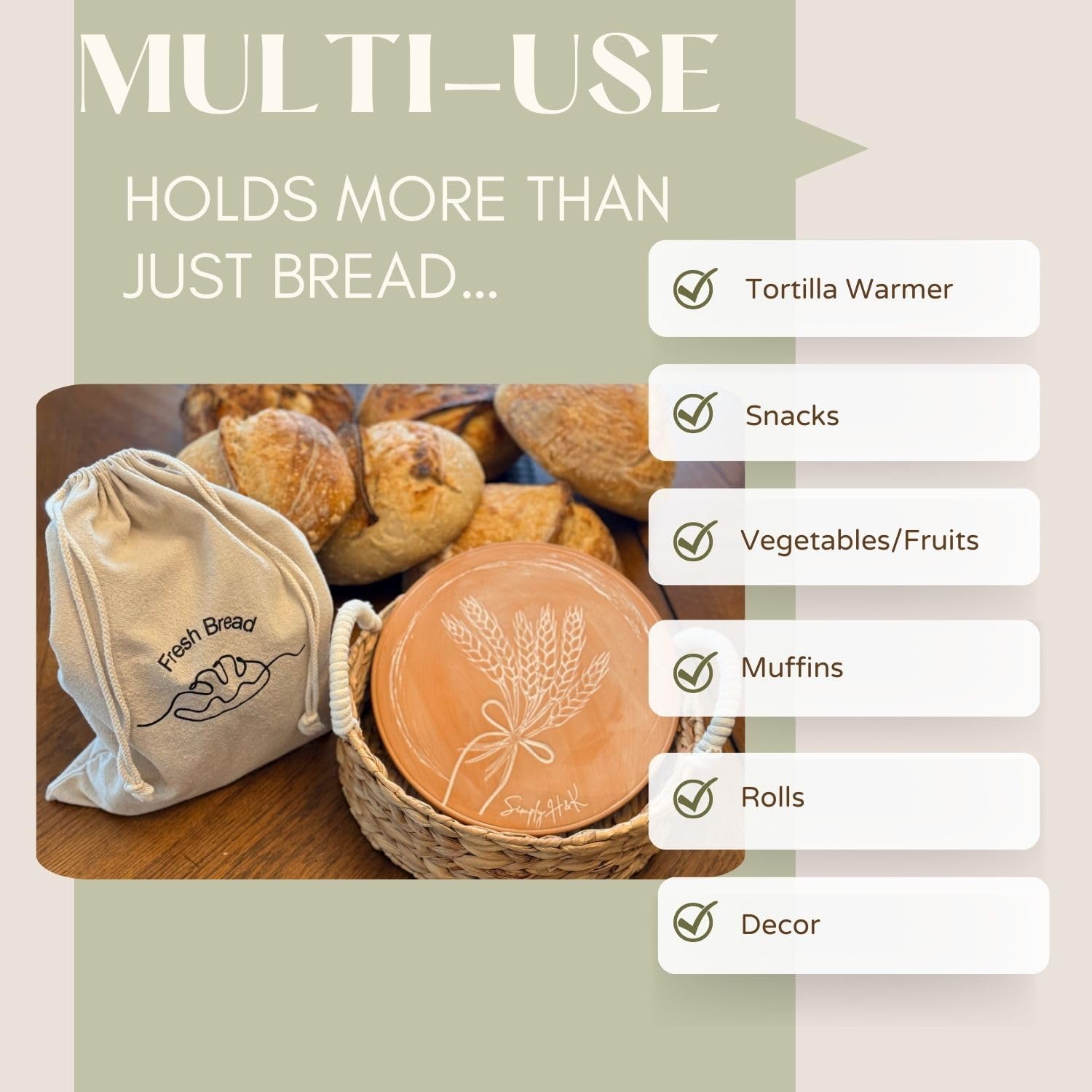 | Included Components | Cotton Bread Bag, Terracotta Stone, Wicker Basket |