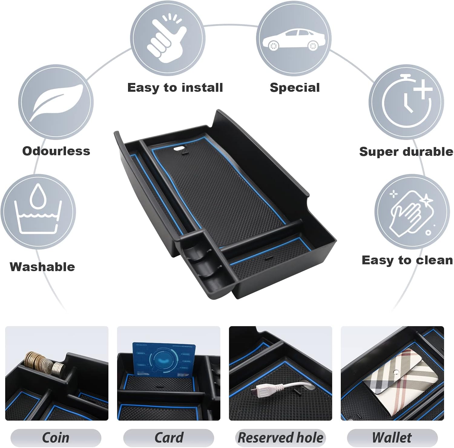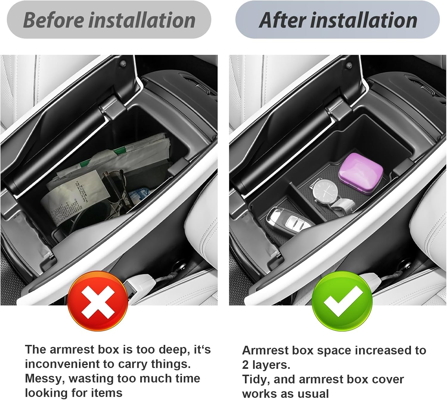 2022-2024 R1T / R1S Center Console Organizer 2022-2024 R1T R1S Accessories 2022-2024 R1T / R1S Insert Glove Pallet Organizer Why Do You Need The 2022-2024 R1T (Adventure/Premium/Ascend) / R1S (Adventure/Premium/Ascend) Center Console Organization Storage Box? The 2022-2024 R1T / R1S interior armrest box has deep and clever storage space, small items that accumulate over time are very cluttered and you will get tired especially when you need to find something and spend a long time not finding it, So you need a suitable 2022-2024 R1T / R1S center console organizer. If encounter any of the following problems, Our 2022-2024 R1S Ascend Storage Box is your good choice 1.Center console storage box cluttered 2.Too much small stuff in your 2022-2024 R1T (Adventure/Premium/Ascend) / R1S (Adventure/Premium/Ascend) 3.Take much time to find something 4.Not enough storage space Our 2022-2024 R1T Premium Storage Box will be beneficial to you in the following aspects ✔Our 2022-2024 R1S Premium storage box has different functional areas for you to store coins, lipstick, bank card, sunglasses, pen, wallet, mobile phone and other small objects. ✔Keep your 2022-2024 R1S Adventure center console ordered, save your time to look for things, keep your items within reach. ✔Our 2022-2024 R1T Ascend storage box divides the center console into upper and lower layers, Make reasonable use of the storage space in the center console of your 2022-2024 R1T Adventure, turned a useless space into practical. ✔The non-slip mat in storage box will prevent the random items from rattling to keep unnecessary noise down. Why do you choose SKTU 2022-2024 R1T (Adventure/Premium/Ascend) / R1S (Adventure/Premium/Ascend) Storage Box? 1.We strictly control every production link, From choose material to make the 2022-2024 R1T / R1S Center Console Organizer, No errors are allowed. 2.We have our own R&D personnel to collect the most accurate data. 3.We use the premium quality material to ensure the R1T / R1S Center Console Tray's quality 4.We always put first the customer's satisfaction, try our best to solve customer's any problem.