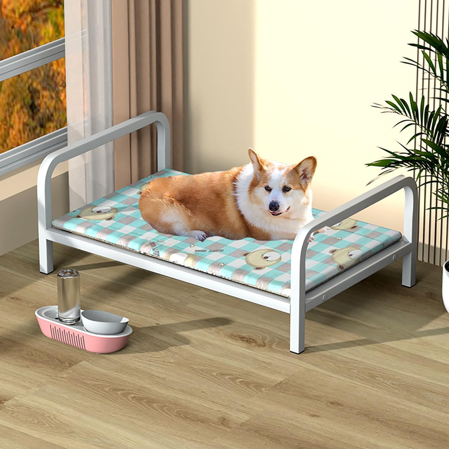 Pamper your furry friend with this stylish and cozy pet bed. Designed with your pet's comfort in mind, this bed features a sturdy metal frame and a plush, cushioned surface adorned with an adorable print. The elevated design allows for better air circulation, keeping your pet cool and comfortable. Perfect for small to medium-sized dogs or cats, this bed provides a cozy resting spot for your beloved companion. Easy to assemble and maintain, it's a practical addition to any pet-friendly home.