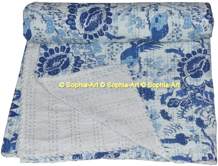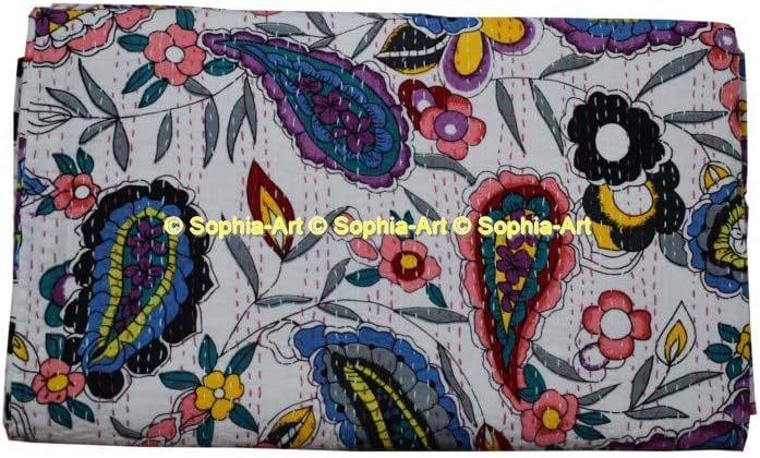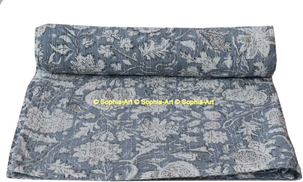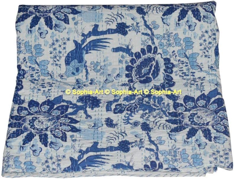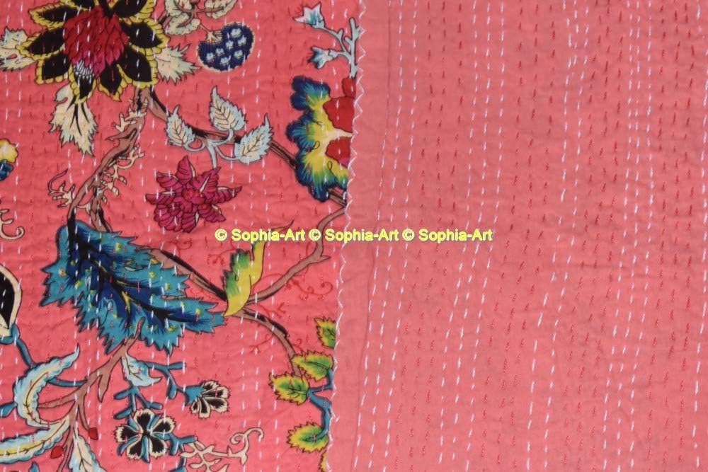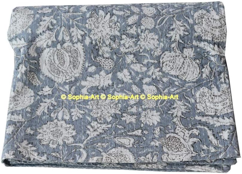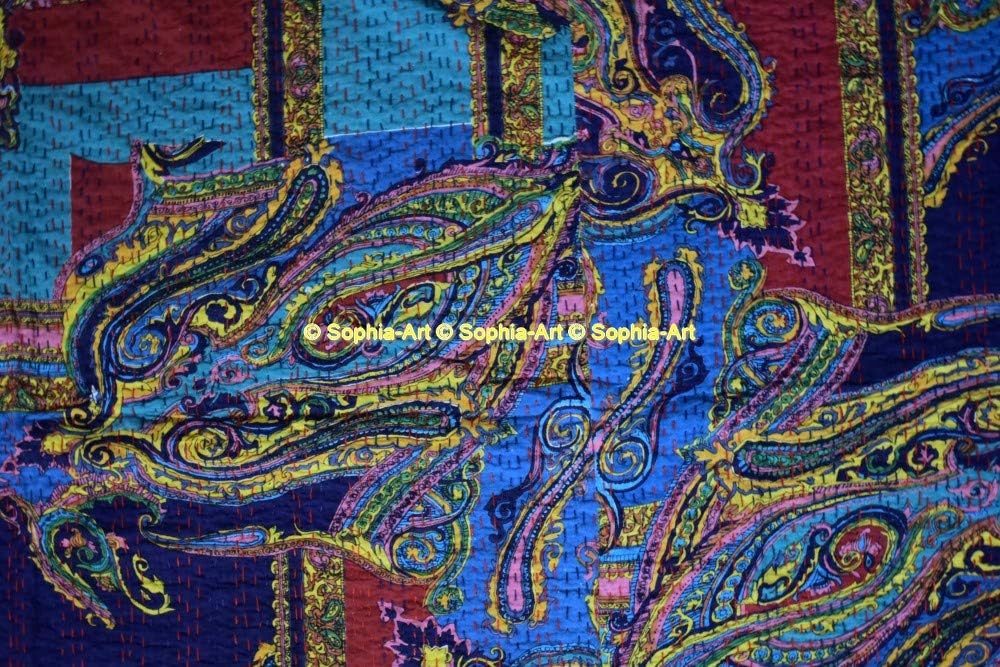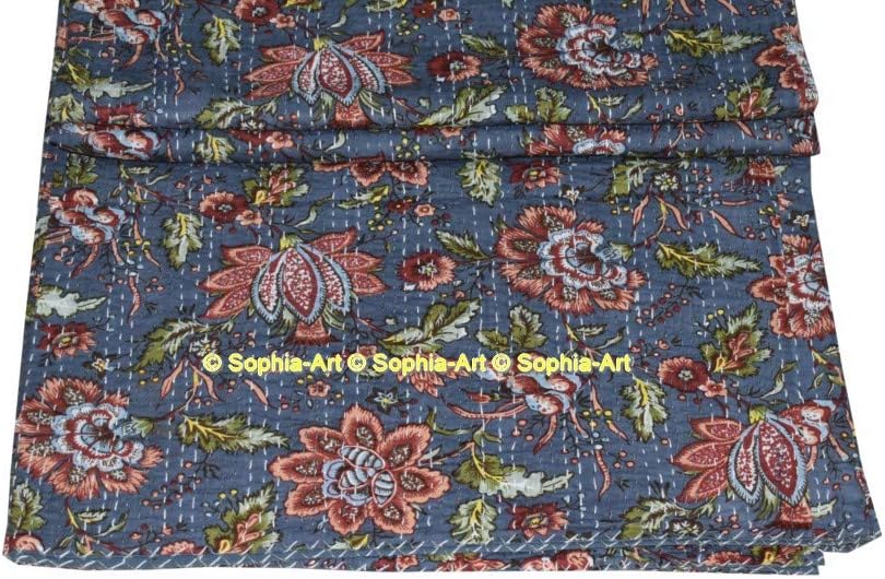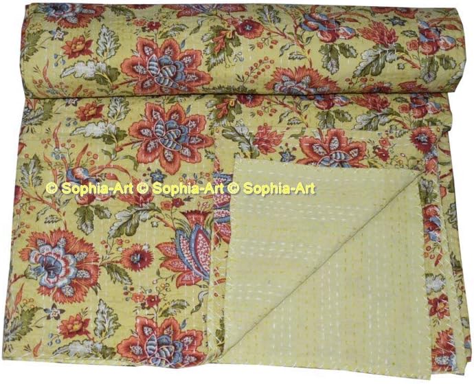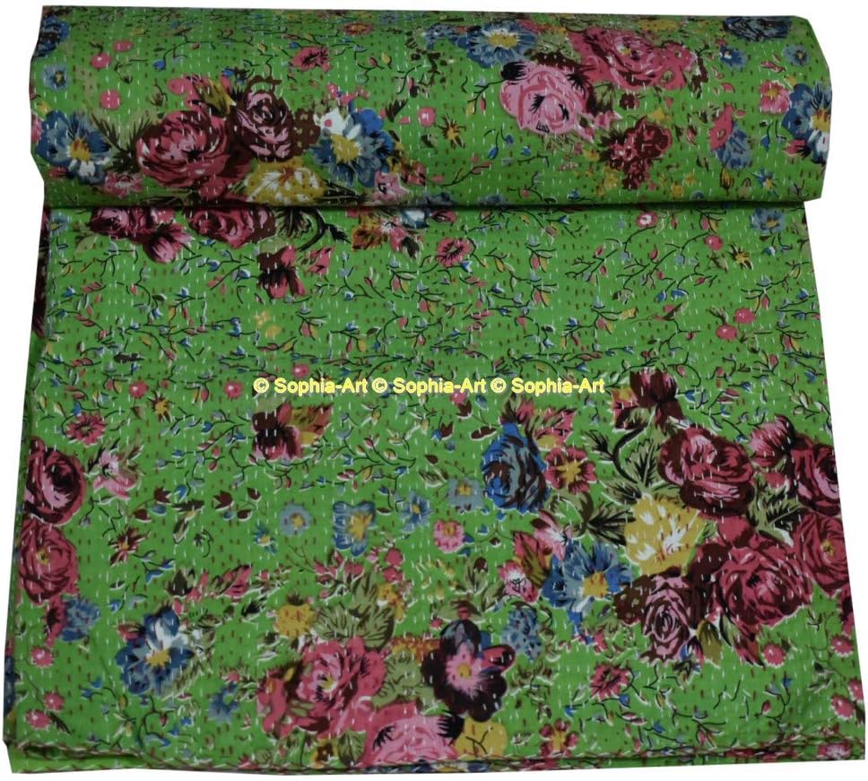 Handmade kantha quilt. Made with 100% cotton. It can be used as a bed cover, bedspread, quilt, wall décor picnic beach throw etc. Kantha is still the most popular form of embroidery practiced by rural women. Typically use saris and cloth and layer them with kantha stitch to make a light blanket, throw or bedspread. This cotton lightweight "Quilts" with a beautiful and colorful floral design can be used as: 1. Bedspread, Bedding Throw, Blanket or Quilt 2. A Summer Bed Cover 3. A Fabulous Picnic Rug 4. Nice Bedroom Quilt , This can fit to as blanket or throw or can easily fit as bedspread / bed cover to King bed . Washing Instruction – Easy To Hand Wash & Dry Clean.
