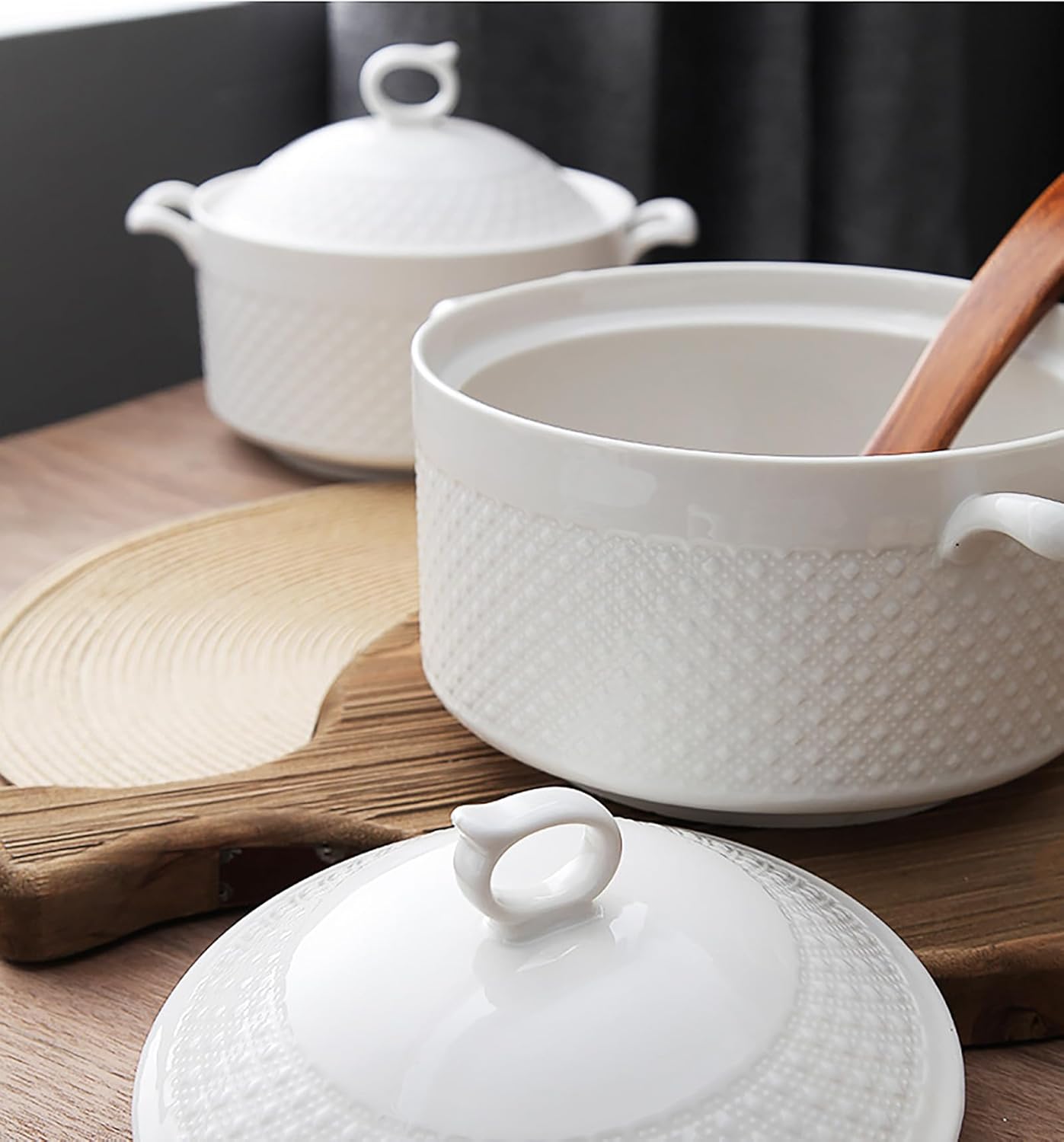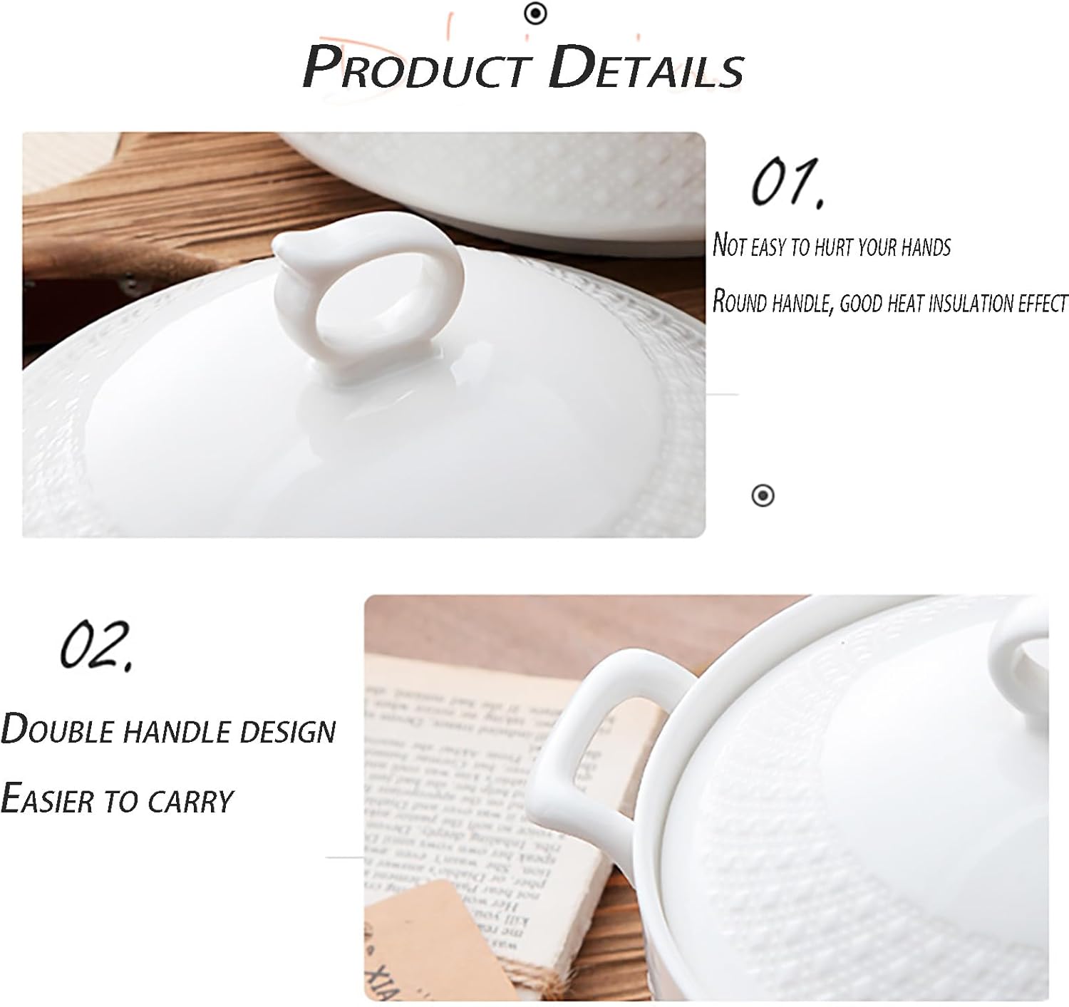 DescriptionOur ceramic soup tureen has been fired at a high temperature of 2372℉, making it sturdy and durable. It features an elegant design that will enhance the presentation of your delicious soups. Its dishwasher-safe feature ensures cleaning, making it designed specifically for everyday use. Indulge in the exceptional taste of your soups in this remarkable vessel, ensuring an unforgettable culinary experience for you and your guests.DetailsPractical Soup Ladle: It enables you to access food easily and conveniently without the need to buy additional spoons. Moreover, the hole on the spoon allows you to hang it on the shelf to maintain good ventilationSmooth Surface: The smooth surface without sharps and burrs will protect your skin from hurting during use.ApplicationThis product can be used to hold sauces, stews, soups, gravy, and other liquids, suitable for refrigerators, microwaves, dishwashers, and steamers/ovens.