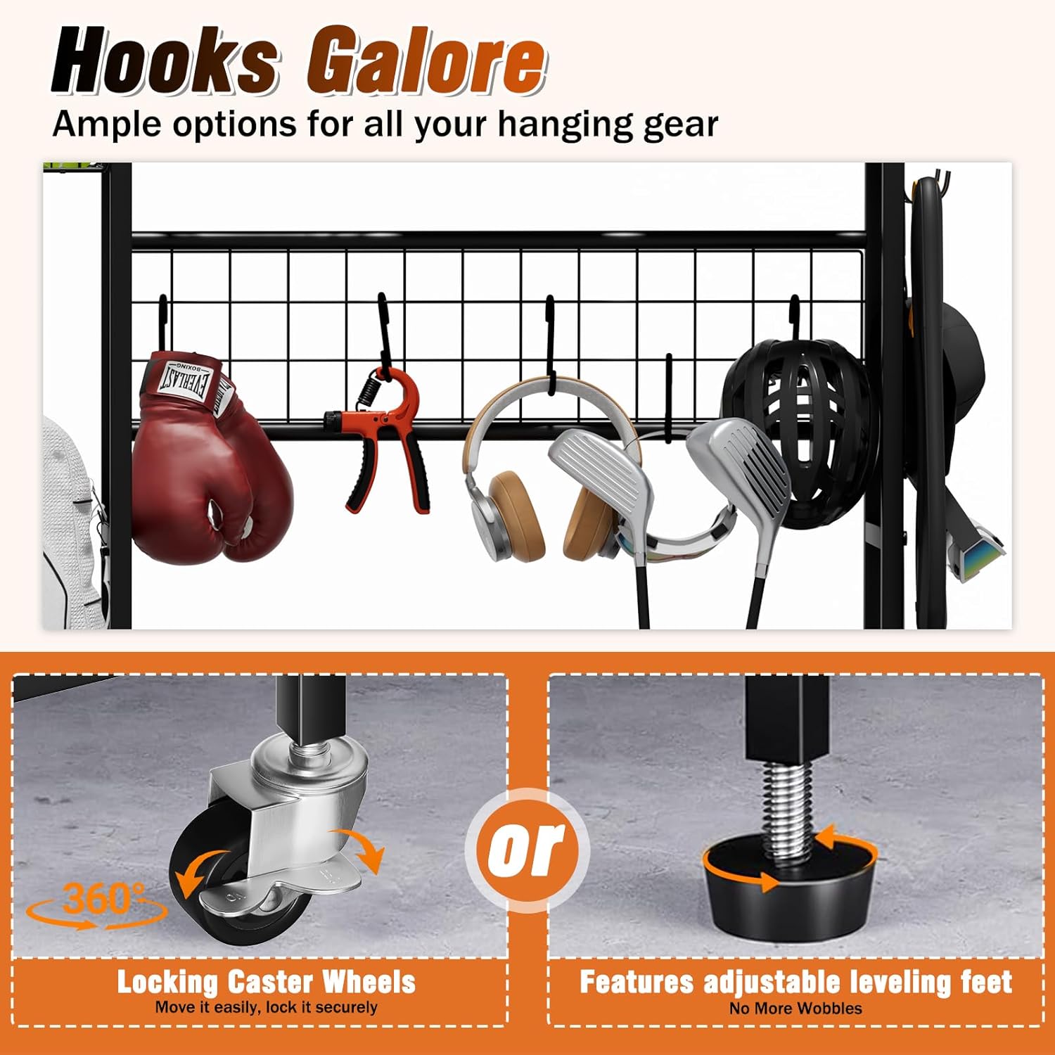 • [MULTI-PURPOSE SPORTS & TOY STORAGE] Beyond golf, this organizer is perfect for basketballs, footballs, yoga mats, and kids' toys. The included utility basket and removable hooks provide versatile storage for a wide range of items, making it a versatile hub for all your family's active gear