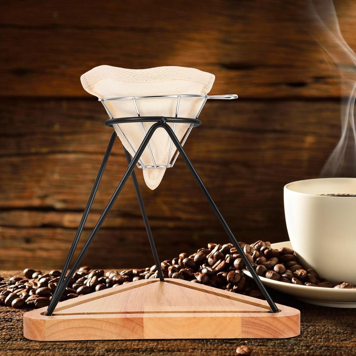 Package Include 1 x Coffee Filter Holder 1 x Stainless Steel Funnel Basket 1 x Filter Cloth Features -Easy brewing: this coffee filter holder allows you to brew rich, coffee with ease, eliminating complicated steps dripper coffee machine stand -stainless steel cloth and wood filtration: the stainless steel filter makes filtration of coffee grounds, resulting in coffee cone filter rack -Size:23.50X22.00X21.50cm/9.24X8.65X8.45in coffee filter holder -Versatile application: Suit for both Office and Home use, this coffee filter holder meets your coffee needs in any setting coffee filter container -Material:stainless steel, cloth, wood coffee filter storage container -Safe: the reusable stainless steel filter reduces the need for disposable paper filters coffee drip filter rack stand -Color: paper holder -Construction: designed for longevity, this coffee filter holder provides consistent performance for a coffee coffee filter cup holderGoods Descriptionpour-over coffee rack Suit for both beginners.coffee cone drip stand Its stainless steel construction makes durability, while its minimalist design complements any kitchen or coffee station setup.metal coffee holder This coffee filter stand is a essential tool for manual coffee brewing, making a stable and secure platform for your coffee dripper