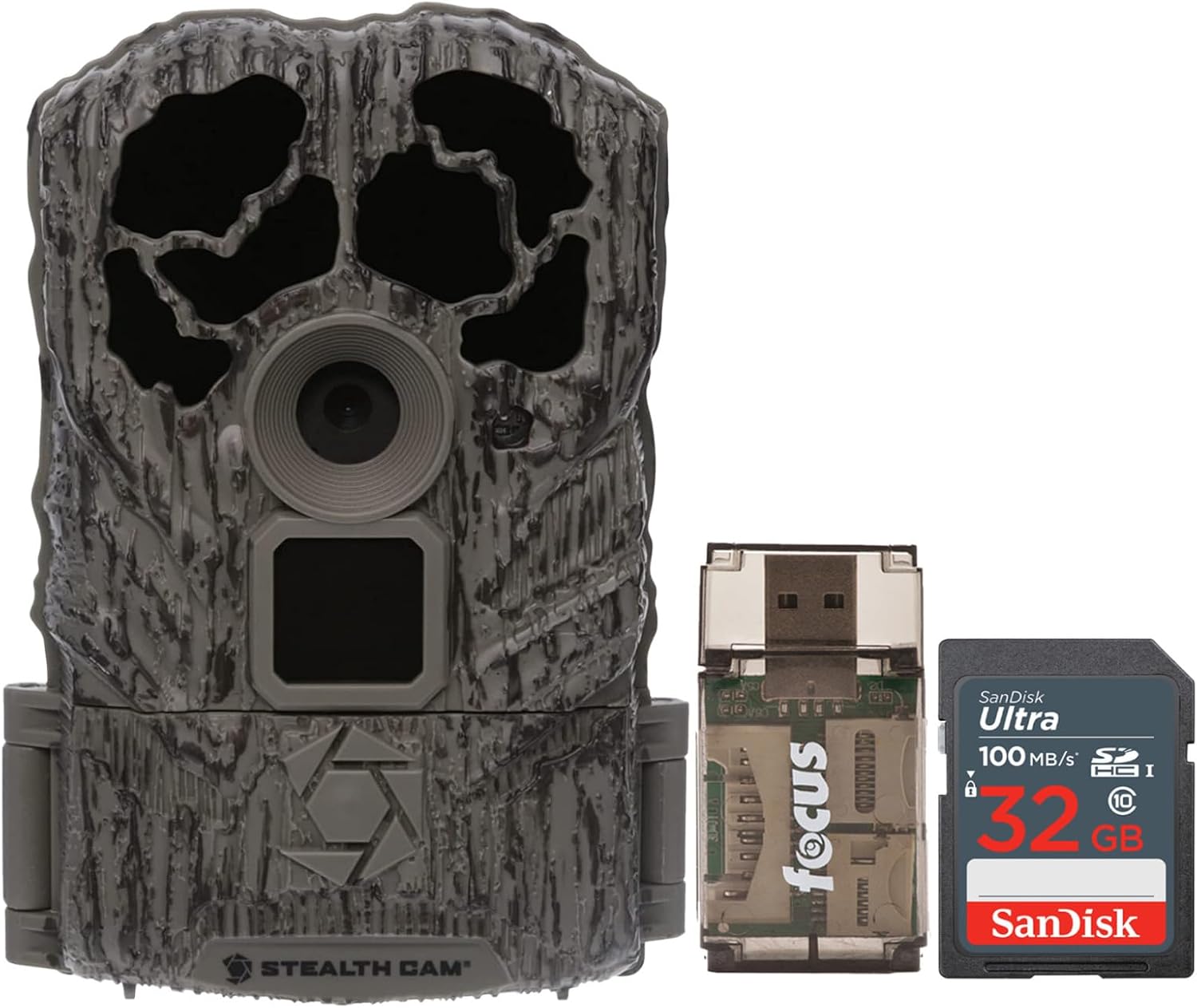The durable Stealth Cam Browtine 16MP trail camera features a 60 feet infrared detection range and burst mode to capture detailed information about your target area. This trail camera features 16 Megapixels and 480 Video at 30FPS. This trail camera in burst mode can take 1 to 3 images per triggering and has 120/60/30/15/5 second recovery time. The trigger speed of this camera is 0.7 seconds with Time/Date/Moon Phase. It comes with an Integrated Python lock latch to fix it on a tree and operates on 8 AA batteries (not included).Command Pro AppView and share your images remotely from any app-enabled mobile device or on the web. Command Pro offers complete control and customization of your wireless trail camera settings. Cellular preferences allow you to change photo resolutions, transmission times, etc. from your fingertips. Manage your cellular data plans from the app with plan upgrades and available add-ons.Bundle Include:2 x Stealth Cam Browtine 16 MP2 x 32GB SDHC UHS-I Memory CardHigh Speed Card Reader