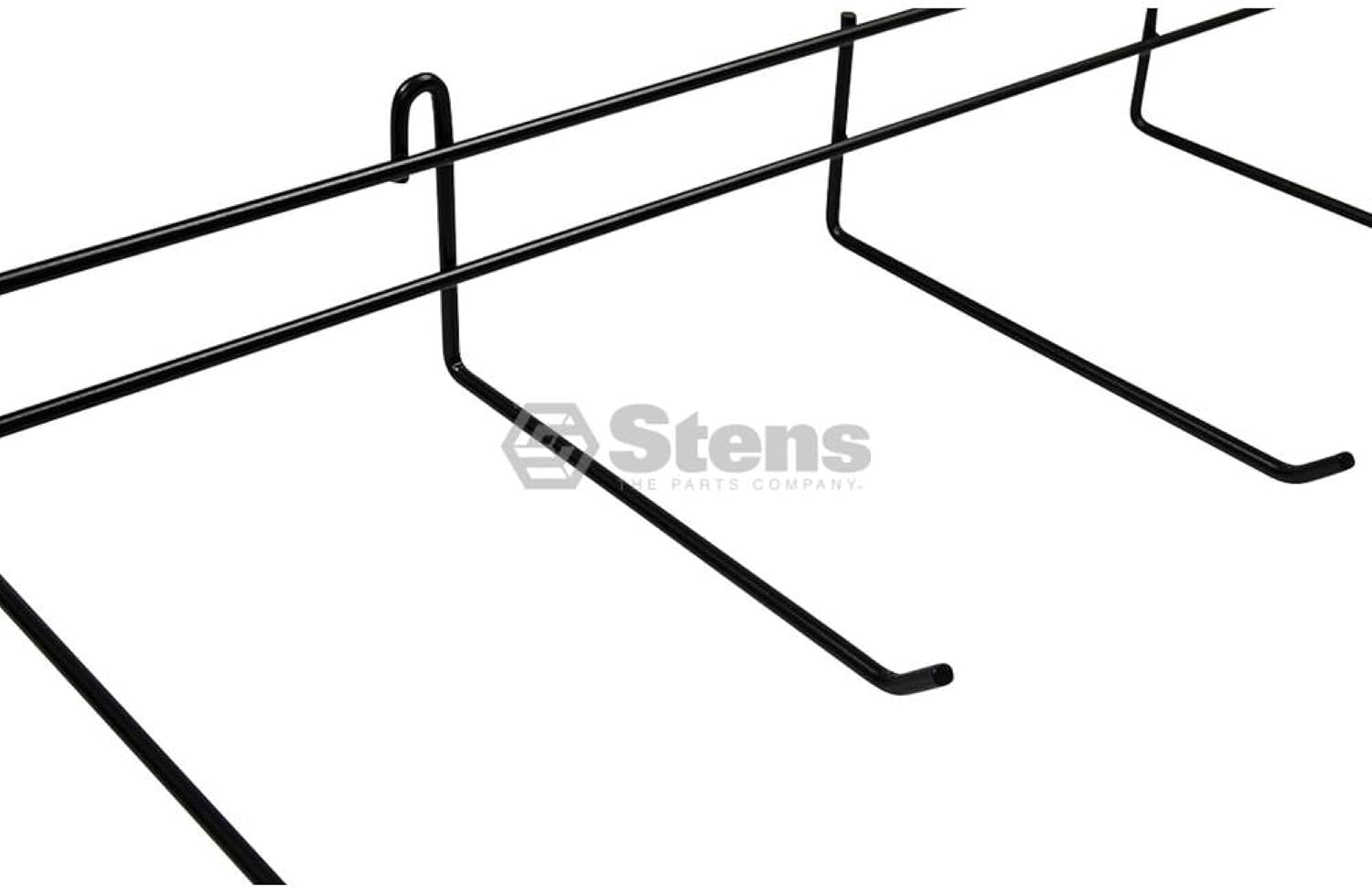 Stens 785-726 belt rack length: 35 3/4" can holdup to 8 different belts prong length is 6 1/2" made of 3/16" steel wire Package of 3 sold per Pack, priced per Pack
