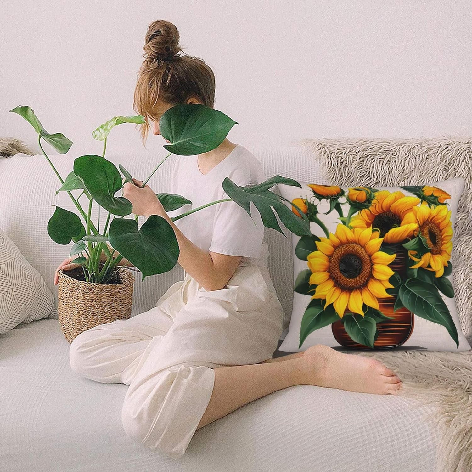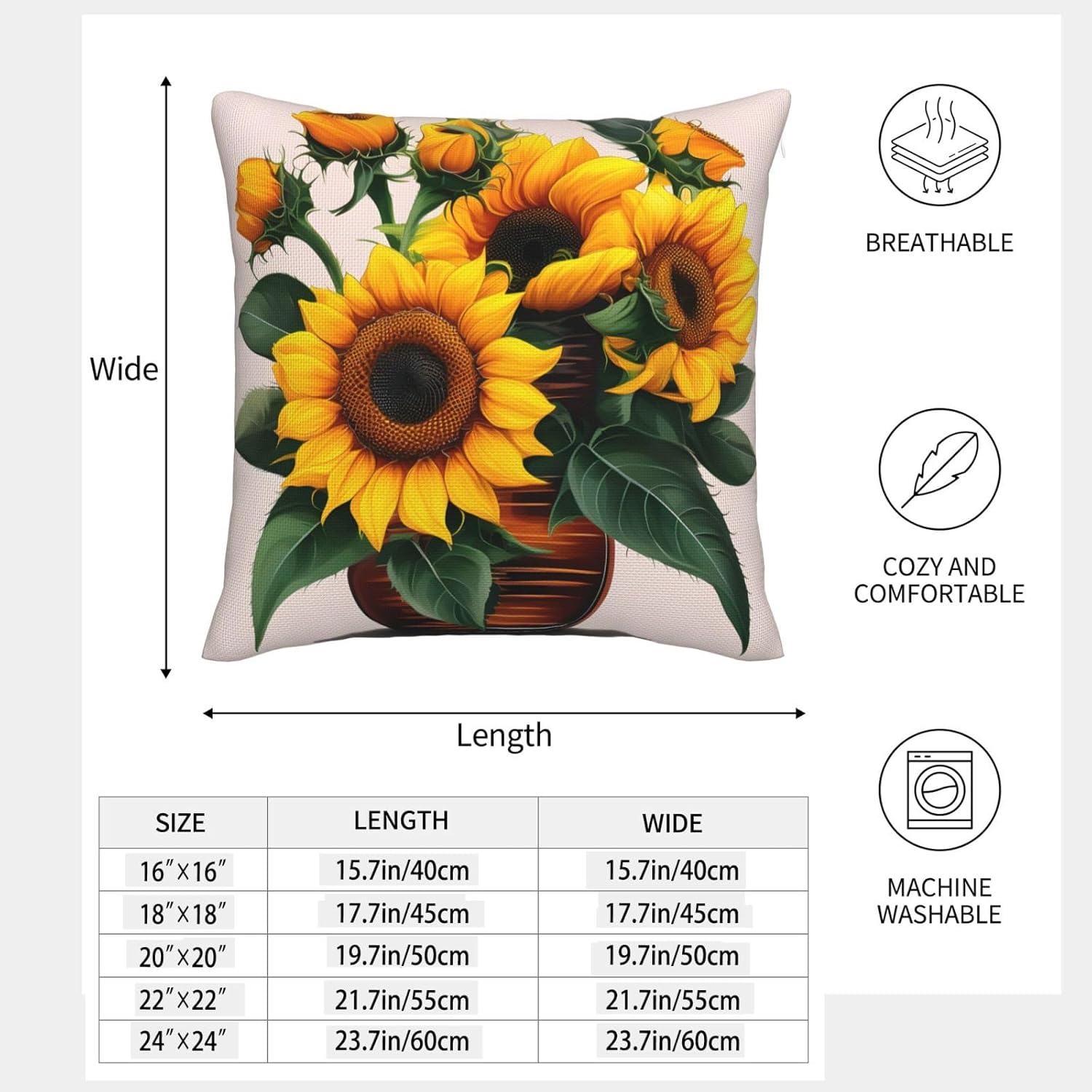 Wrap yourself in the relaxed elegance of our Sunflower and Rose print imitation linen pillowcase, which is a versatile addition to any space. This product is made of premium imitation linen fabric, integrating the eternal charm of linen pillowcases with modern practicality. Whether decorating your sofa, chair, garden, car, bed, or office, it will give people a low-key and exquisite feeling. Breathable texture keeps you cool in summer and comfortable in winter, making it a favorite all year round. Adopting an invisible zipper design, the appearance is seamless and easy to use. These stunning pillowcases are not only suitable for living room sofas or bedrooms, but also great present for family and friends. Fit for birthdays, anniversaries, and gatherings, it is the flawless way to add a touch of elegance to any occasion! It is not just a linen pillowcase, but also a canvas to showcase your personal style. Enhance your space with linen yarn, conveying comfort and elegance