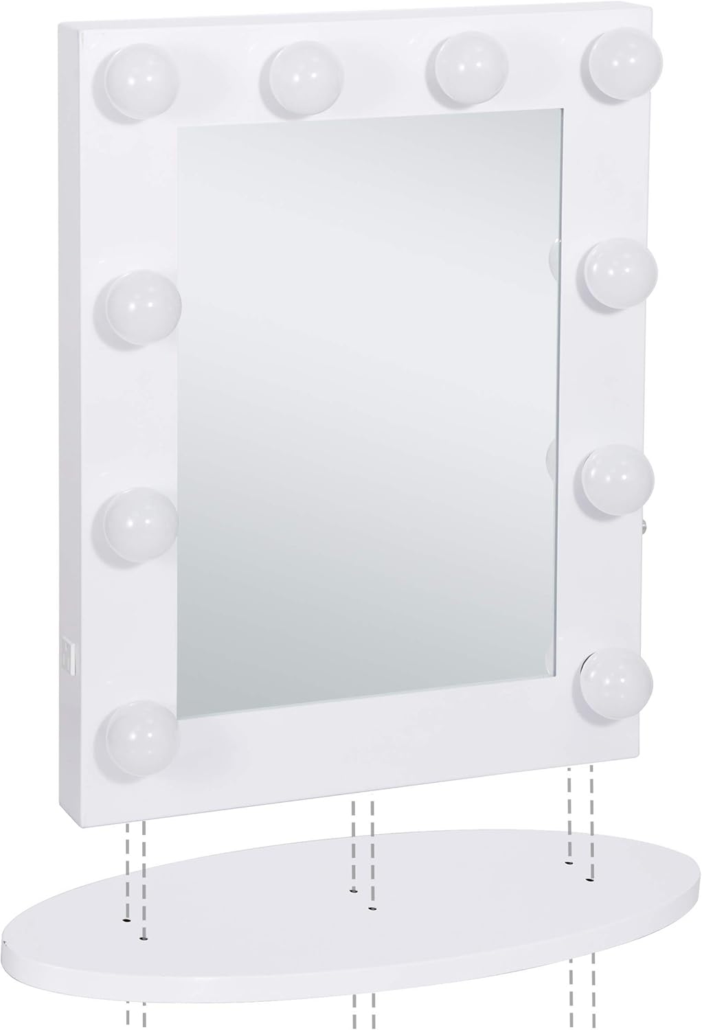 "Taking joy in life is a woman's best cosmetic." We’ve combined innovative technology with vintage glam to transform your getting-ready routine into an experience! -- SUPER DEAL Plus Clear Hollywood Vanity Mirror with Lights You play the leading role in front of the Hollywood Mirror, a glamorous fixture that illuminates your makeup application or gives a little extra light to a dim bathroom. The generous frame can be mounted to a wall but also comes with a support for ventures. Just plug it into a standard outlet to activate its 12 energy-efficient LED lights that call your name. WHY CHOOSE US: Timeless classic Hollywood backstage style that will fit any decor Solid metal body with detachable sturdy base for table top setups Pre-made holes in the back for wall-mounted setups 12-bulb Hollywood-style vanity layout provides perfect makeup lighting Soft white incandescent globe vanity bulbs included Side-mounted dimmer available for accurate lighting control Solid wood and mdf construction with quality electrical components. Designed for optimal lighting and perfect size, ideal for home or professional use. Specifications: Base material: metal Frame material: Metal Mirror size: 24'' x 16.5’' Frame size: 26'' x 20’’ x 3’’ Package included: 1PC Hollywood makeup lighted mirror 12 PCS 110V dimmable LED bulbs Metal Hooks and screws