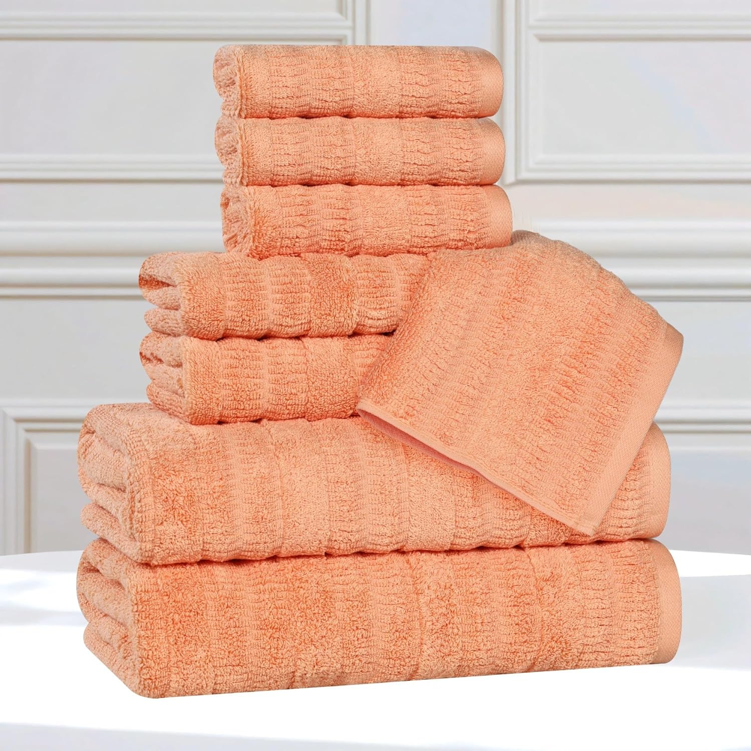 Elevate your bath time with the indulgent Superior Mika Smart Twist Viscose Cotton Blend Bath Towels. These towels, made from 80% cotton and 20% viscose, bring spa-like luxury to your home. The low-twist design ensures superior softness and absorbency, while the vertical, ribbed texture adds a hint of sophistication. Available in a curated selection of elegant colors, this towel set enhances your bathroom decor and creates a calming, luxurious atmosphere.