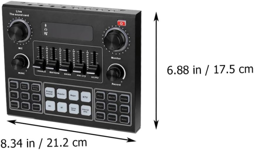 Package Include 1 x sound Characteristics - Material: ABS Sound Changer. - Color: Black Sound for Live Streaming. - Size: 21.20X17.50X3.80cm/8.33X6.88X1.49inch Audio Mixer. - Large capacity battery can be used for long time, it is one of for you Voice Changer. - Wide range of uses, fit for mobile phone, computer and handset Portable Voice Changer. - Manufactured with materials are strong and durable Mobile Phone Sound Card. - Support dual mobile phones or one mobile phone and one computer at the same time Phone Sound Card. - Built-in many sound effects are easy and convenient to use Audio Card.Goods InformationPortable Voice Changer It is one of for you.Voice Changer Are you looking for a , yet live recording sound card? Are you in search of a sturdy, trustworthy tool that can do multiple jobs at once? , ! Our live recording sound must meet your needs