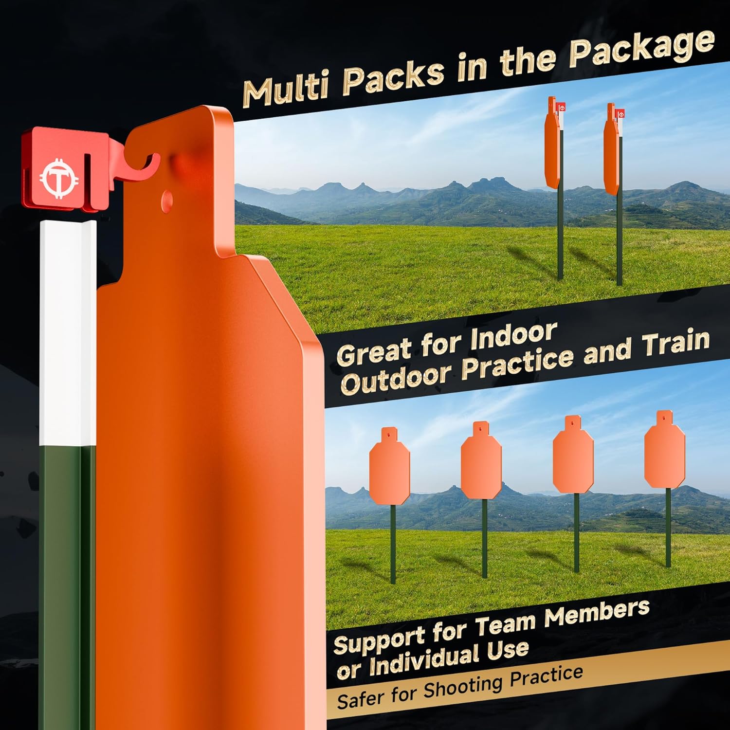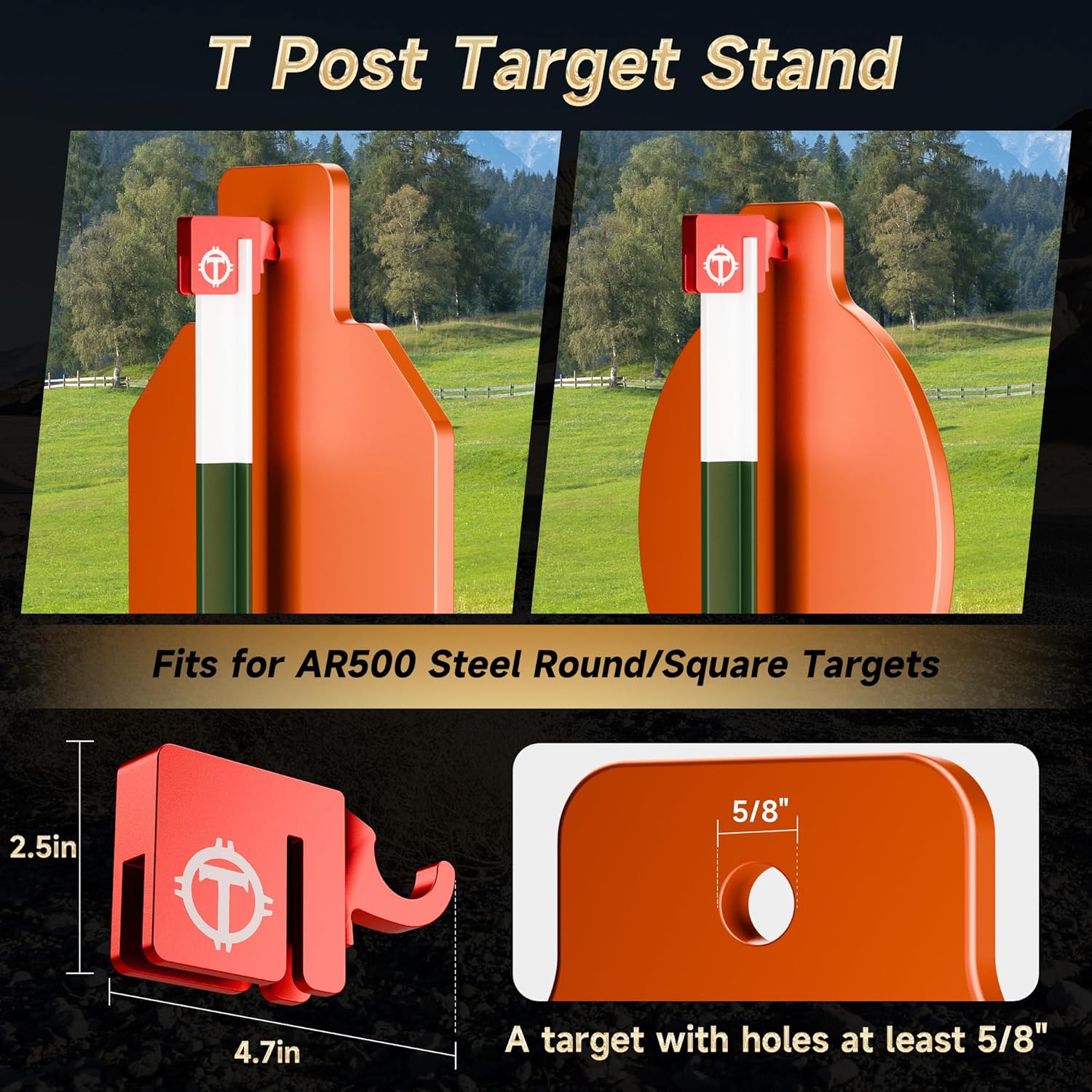 How the t post target hangers will help? Heavy-Duty Steel for Max Stability:T-post target stands with thick powder-coated steel resists bending/wobble; superior rigidity vs spring/bolt hangers for shooting safely. Our mounting target hooks are made to withstand anything, and strong enough to hold most AR500 steel targets, just slide one of the hangers over a standard T-Post and attach the target ready to shoot. T-Post target mounting brackets make setting up quick and easy, and then you can practise shooting safely. T-post target hangers with powder coating & smooth edges prevent chipping/corrosion; minimal paint wear with heavy use.
