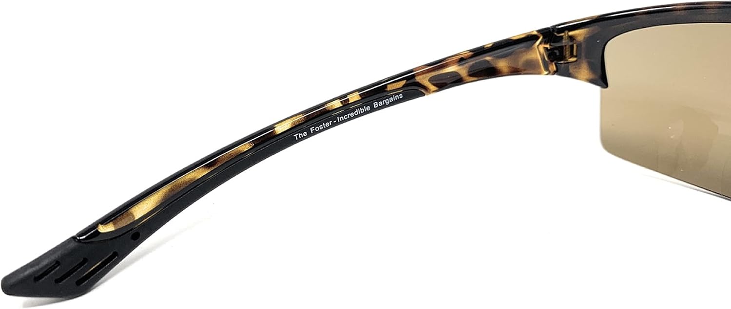 Live on the sporty side. This semi-rimless sun reader has tinted lenses to protect your eyes against harmful UV rays and bifocal lenses to help you read the fine print. This half rim frame includes small sections of magnification along the bottom of each lens offering the power you need while the rest of the lens has no magnification. These safety glasses have passed the basic Z87.1 standard and are marked with the ANSI Z87.1 stamp on the inside temple piece. Eye protection that’s Z87.1 compliant WILL be marked with “Z87” on the glasses. Available in powers: +1.50 +2.00 +2.50 and +3.00, Available Colors: Black and Tortoise, Choose a Single pack or a 2 Pack.
