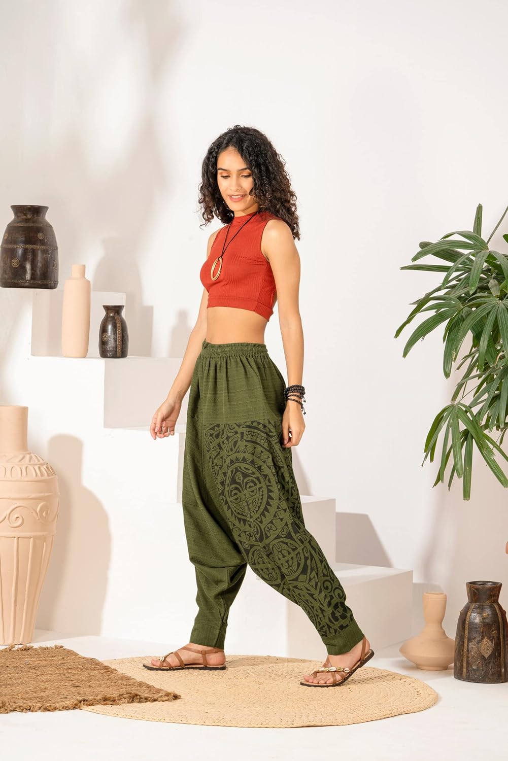 The finest long-staple, super-combed 100% cotton is used to make these hippie pants; The fabric is gentle on the skin.