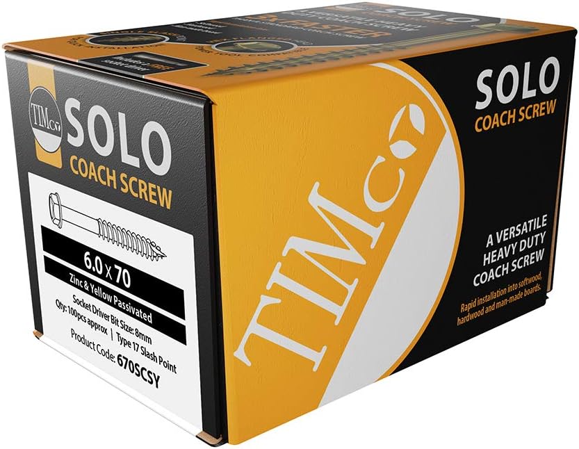 | Included Components | 1 x TIMco Solo Coach Screws 6.0 x 70 mm - Hex Flange Head - Yellow - (Box 100) - 670SCSY |