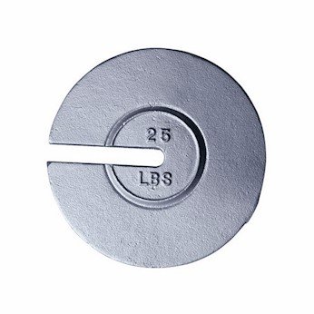 Cast Iron Slotted Weights are used in a variety of applications such as pressure, torque, and tensile strength testing. Cast Iron Slotted Weights are typically used with a hanger that also has its weight calibrated so the hanger can be used as part of the overall weight under test. Several Cast Iron Slotted Weights may be used together to build up from a minimum weight to a maximum test load. The hanger weight selected should be able to accommodate the total load needed. Cast Iron Slotted Weights above 2 kg/5 lb have adjusting cavities. Weights below 2 kg/5 lb are adjusted by removing material from the underside of the weight. Each weight has its nominal value cast into the topside of the weight. SpecificationsMass Class: Class 6 Mass Size (lbs): 0.5 Thickness (in): 0.3125 Diameter (in): 3.75 Mass Certification: None Slot: 0.5625 (in) Description: 0.5lb, 3-3/4 (in) Dia, Avoirdupois Slotted Weights Universal Guarantee: 3 month