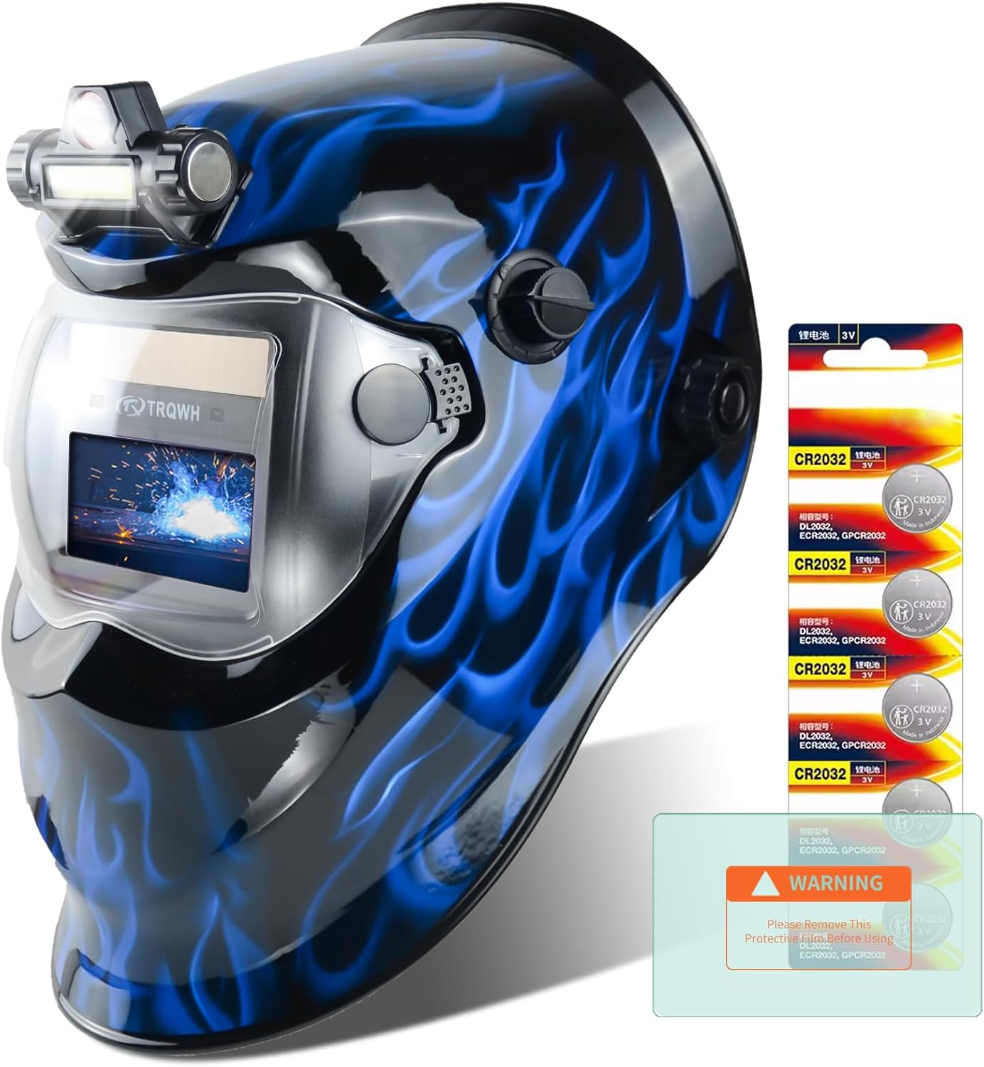 TRQWH Auto Darkening Welding Helmet & Round Hole Welding Hood Headgear