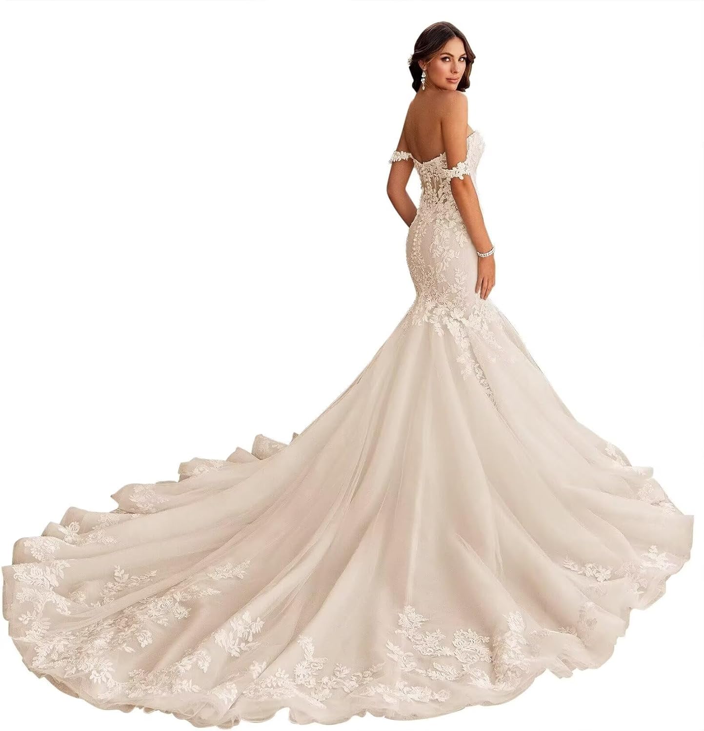 | Fabric Type | Boho Mermaid Tulle Lace Applique Off Shoulder Wedding Dresses for Bride |