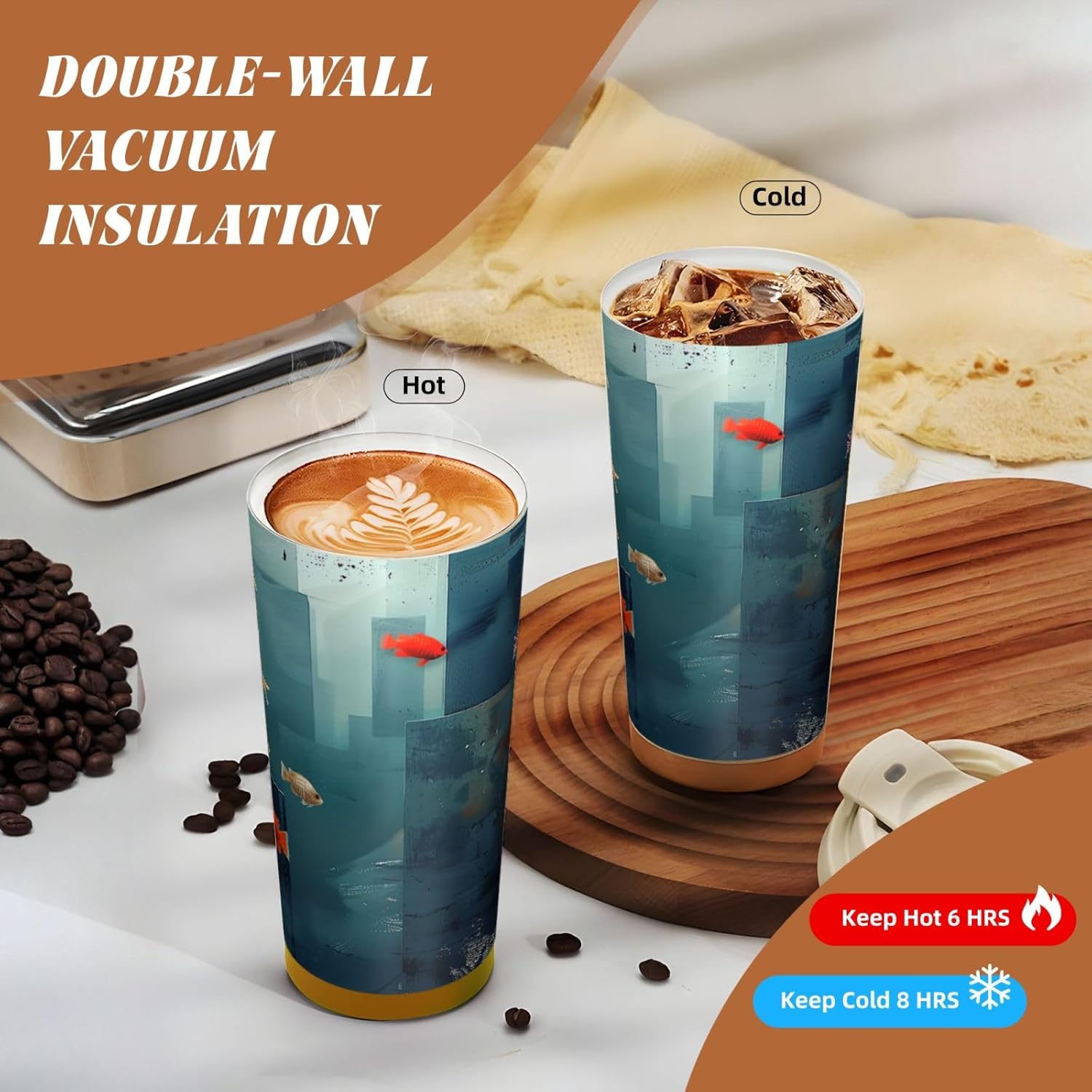 Underwater market Experience the ultimate blend of style and functionality with our uniquely designed coffee mug. Perfectly suited for those who appreciate individuality, this 16 oz tumbler features a full-print, customized design that sets it apart from ordinary mugs. Made from top-grade 316 stainless steel on the inside and 201 stainless steel on the outside, along with a PP lid and straw, this mug is not only stylish but also incredibly durable.The superior insulation keeps your drinks at the desired temperature for more than 12 hours, ensuring you can enjoy your coffee, tea, or any other beverage no matter the weather. The ergonomic, tapered shape of the mug provides a comfortable and firm grip, making it easy to handle and carry. Whether you're on the go, relaxing at home, or working in the office, this versatile tumbler is the perfect companion.Additional features include a dual-drink lid, a convenient straw, and a sturdy nylon wrist strap for portability. The non-slip base adds an extra layer of security, keeping your drink stable on any surface. For cleaning, simply wash with water or wipe down; avoid using bleach or a dishwasher. Note that due to different measurement methods, a slight variation of 1-3 cm in size is considered normal.Make a statement with our unique, customized coffee mug, and elevate your drinking experience today!