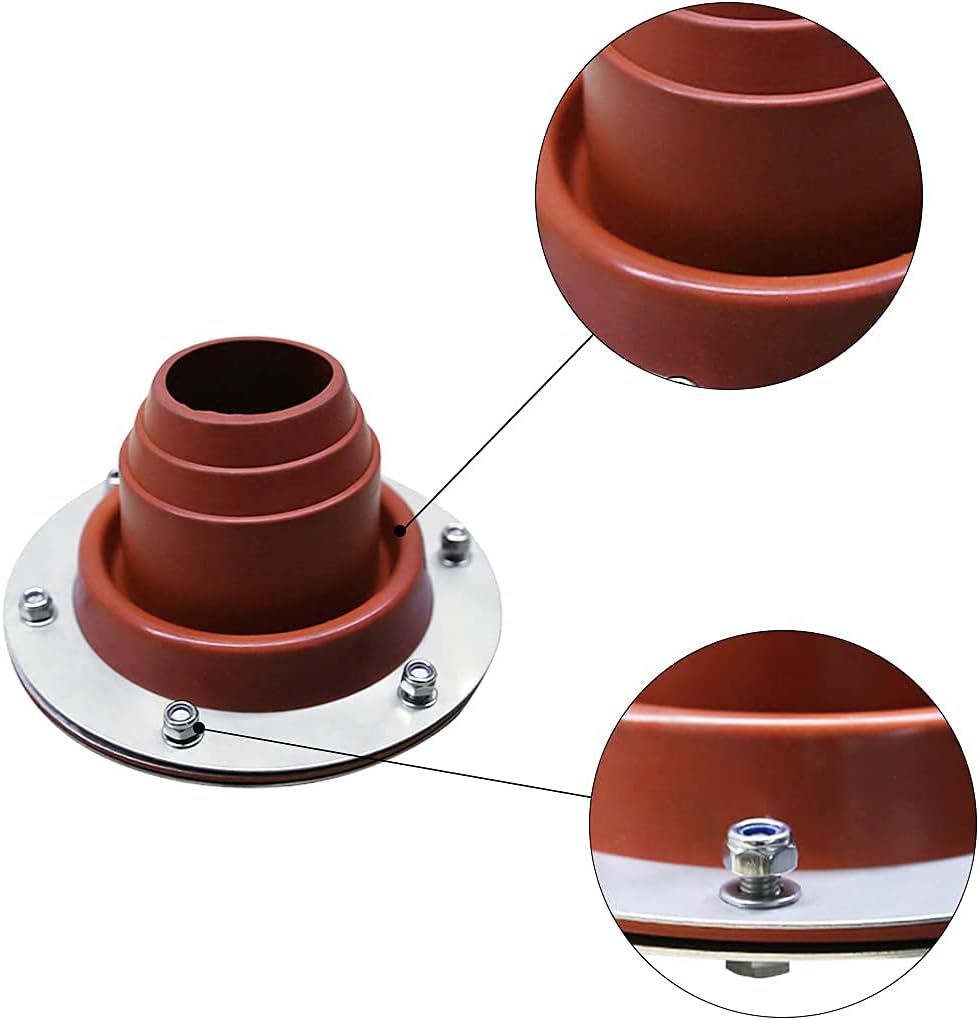UNISTRENGH Silicone Flexible Roofing Pipe Flashing Boots - On Site Adjustable Roof Pipe Jack Boot with BasePerfect for use with, Bell Tents, Tipi's, Yurts, Log cabins, Sheds, Boats, Boat houses, Summerhouses, workshop, garages and anything else that requires a flue exit.Fits perfectly on Frontier and Outbacker stoves. 60mm diameter.This is for the flashing kit only.For flue pipes from 50- 75mmOur Wood burner, stove Flashing Kit allows you to safely install a wood burner / stove in a location that suit you. Specially designed for use in Bell tents, yurts, tipi boats, cabins and much more.Specially formatted high heat proof silicone rubber enables up to 45 degree angle on exit which makes this flashing perfect for most installs.This flashing works well with pipe sizes from 60mm and fits standard sized exhaust pipe 63.5mm very easily without cutting.The new pre drilled clamp allows for easy installation on fireproofed fabrics that are often Bell tents, Yurts, Tipi etc. Simply unscrew the 2 clamping plates, and reconnect after cutting your screw holes in the fabric for a fast and pleasant installation. 10mins.We also stock wood burning stoves.Operating temperature - Safe operating 100° degrees - Max 200 ° (Short period of time)A flashing kit should be installed with a minimum distance of 110-120cm from the stove to allow sufficient cooling.Always wear gloves when installing the kit. May have sharp edges on the inner plate.Package Included:-Round shape-2 predrilled circular clamping rings1 predrilled silicone seal6 bolts and screws12 washers.-Oval Shape-2 predrilled circular clamping rings1 pre-drilled silicone seal8 wing nuts16 washers