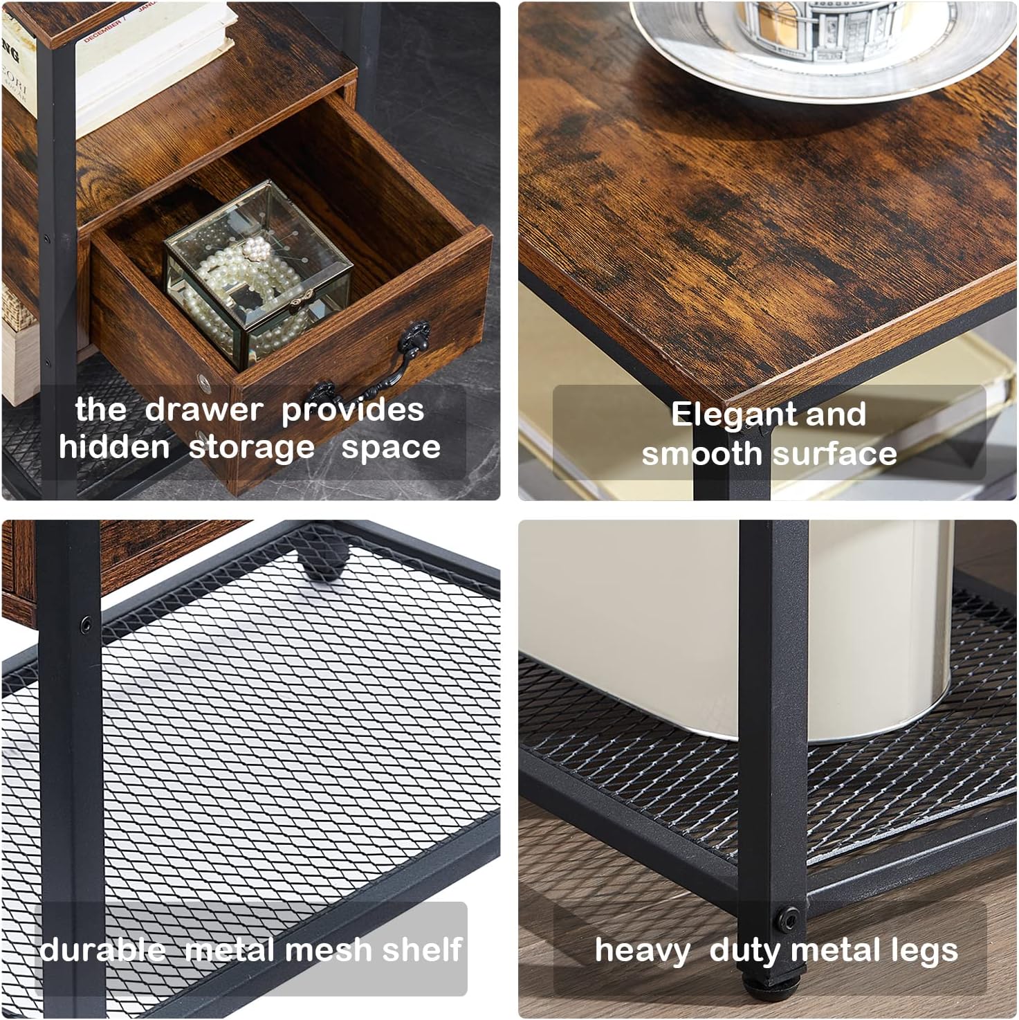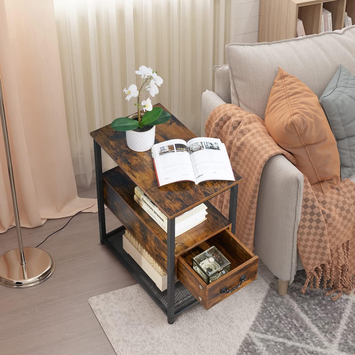 VECELO Narrow End tables: Tough structure Featuring light weight and compact design Equipped with adjustable feet Suitable for a variety of decoration styles Friendly Customer-Service Specifications: Color: BROWN Dimension: 20.5" x 12.6" x 23.6" Package Includes: 2 x End Tables 1 x Instruction 1 x Assembly Kit