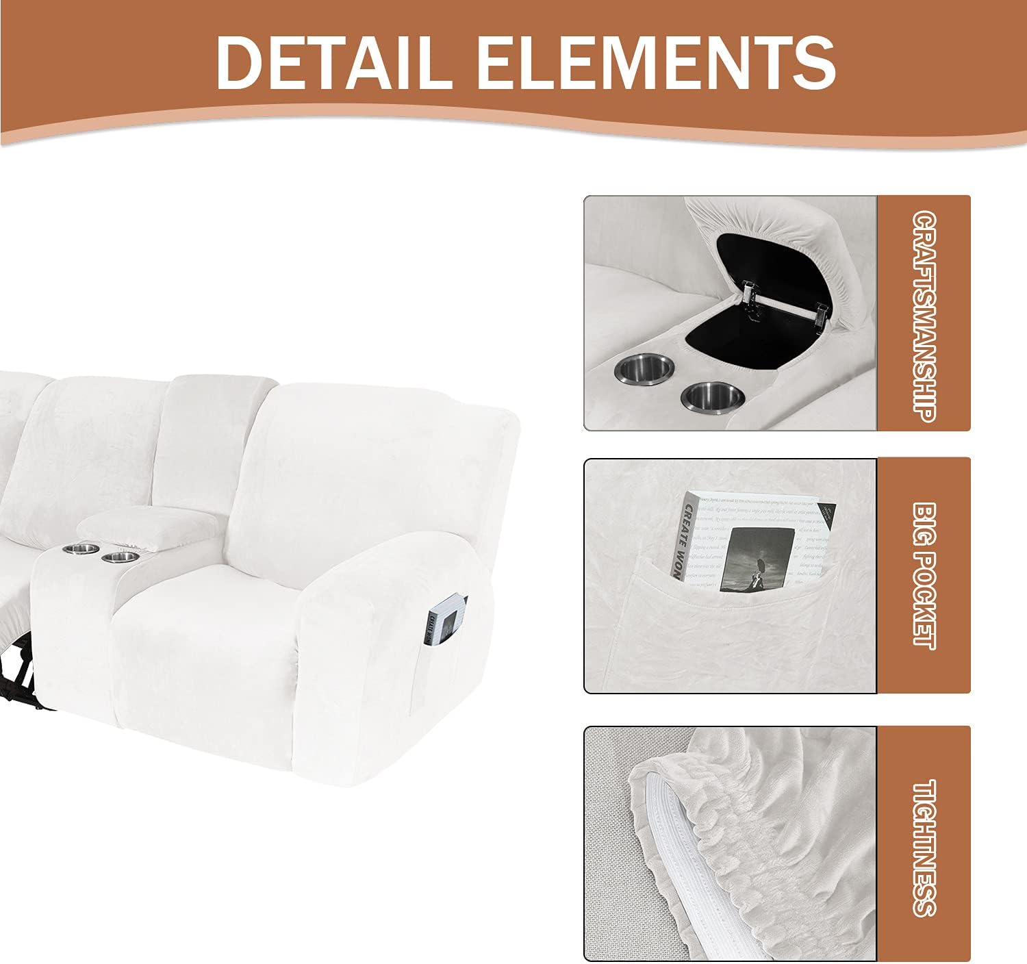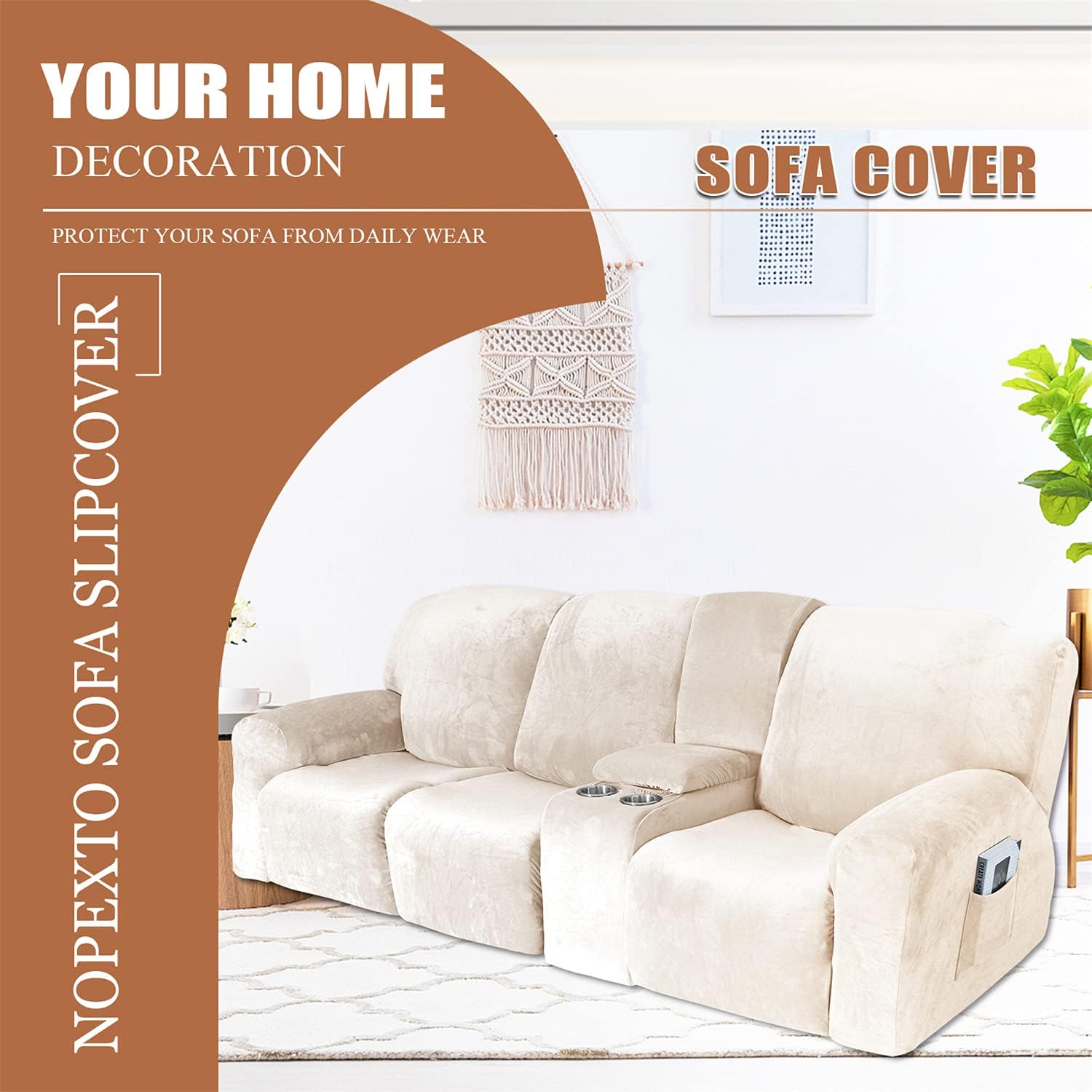 This beautiful and large enough Newest Design 10 piece recliner slipcover makes for a highly valuable addition to any living room. FEATUREThe stretch fabric fits the sofa perfectly, is not easy to deform, and is durable.Comfortable and style, it brings new style to your sofa and makes it look novel and amazing.Protect your sofa from stains, spills, abrasion and scratches, perfect for families with children and pets. MEASURE GUIDERecliner cover size:Recliner cover length: 85-122in(216-310cm);Recliner cover width: 26-37in(66-94cm);Recliner cover high: 30-41in(76-104cm);Wide backrest: 21.5-27.5in(54.6-70cm);Cushion width: 37-44in(94-112cm). WARM Tips:1.Please refer to the product size chart, and measure your sofa prior to purchasing to ensure the best fit.2.Due to the different monitor and light effect, the actual color of the item might be slightly different.3.Please allow 1-3cm measuring deviation due to manual measurement.