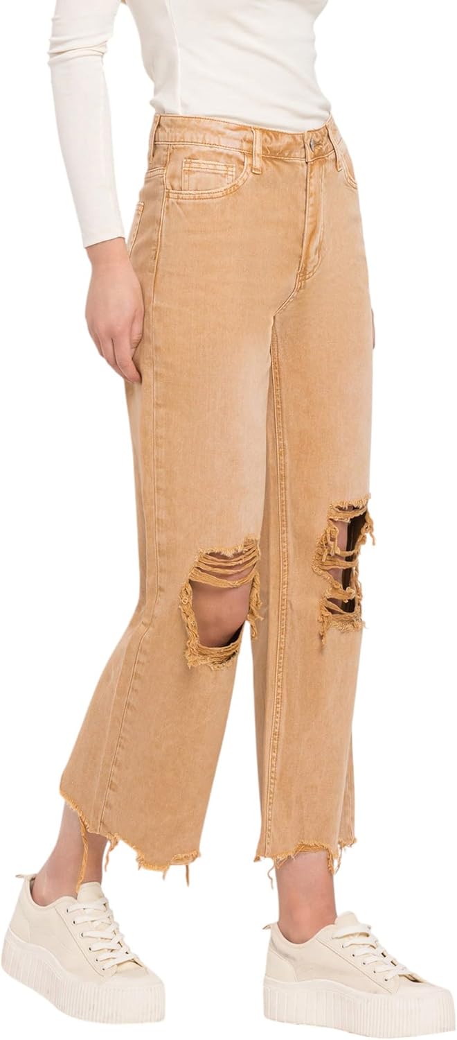 Our Super High Rise 90's Vintage Crop Flare Jeans will take you back in time and turn heads! Crafted with non stretch denim, these jeans have a super high rise waist and a distressed detail. Finished with a raw hem and destruction, the cropped length will give you the perfect vintage flair.