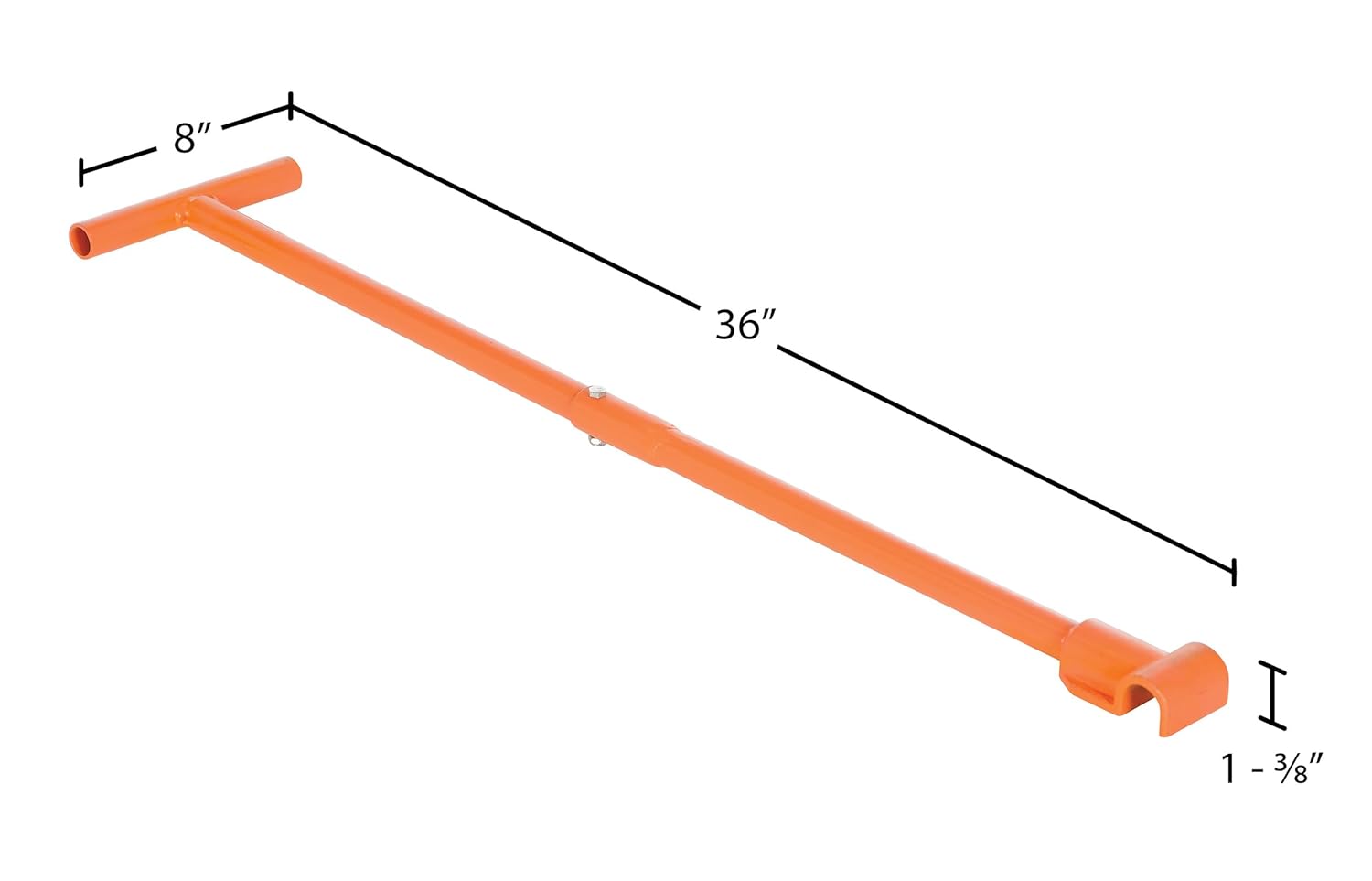 This Vestil VHMH-36-1 steering bar is 36" in length and suitable for use with the VHMS-2 machine roller for moving and maneuvering heavy machinery. It has a 4" sleeve for connecting to the machine roller and an 8" handle for comfort. This steering bar is collapsible and connects with the sleeve for easy storage.Vestil manufactures materials handling equipment, including hoists and trolleys, jib and gantry cranes, loading dock equipment, and storage solutions. The company, founded in 1968, is headquartered in Angola, IN.